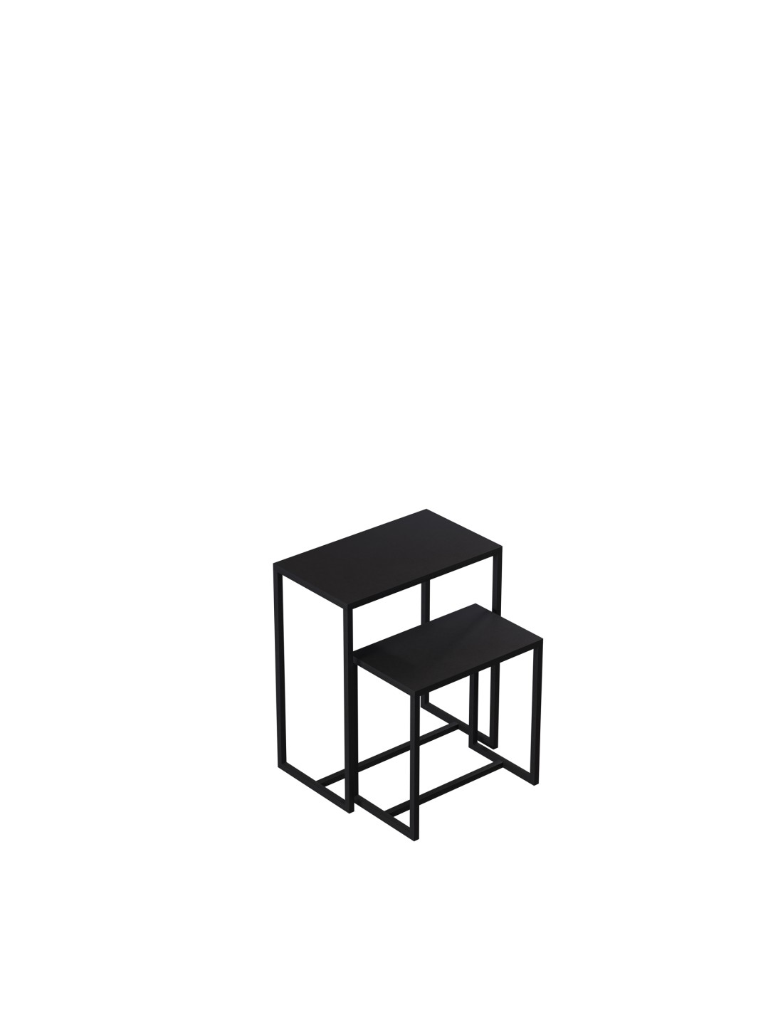 Set de 2 tables d'appoint, 60x35xh70 et 50x30xh50 cm, en métal noir