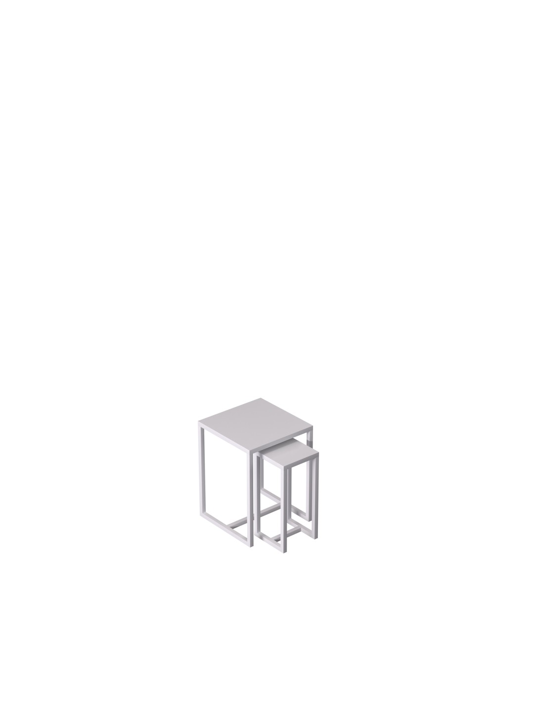 | Set de 2 tables de présentation, 30x30h43 cm et 36x36xh48 cm, métal vernis de poudre blanc mat. |