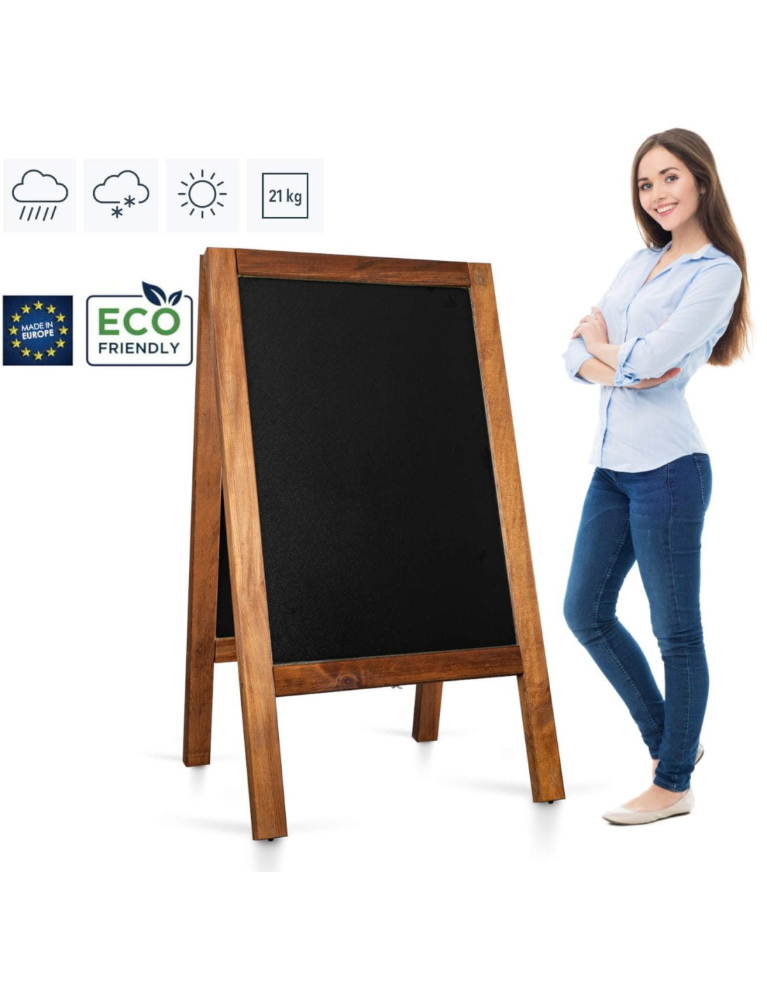 Le chevalet stop trottoir PRO est destiné à l'usage extérieur. Grâce à sa finition spéciale, il est résistant à toutes les conditions météorologiques - le vent, le soleil, la pluie, la neige, les basses et hautes températures. Grâce à l'utilisation du profil de 6 cm, il est très stable et durable.