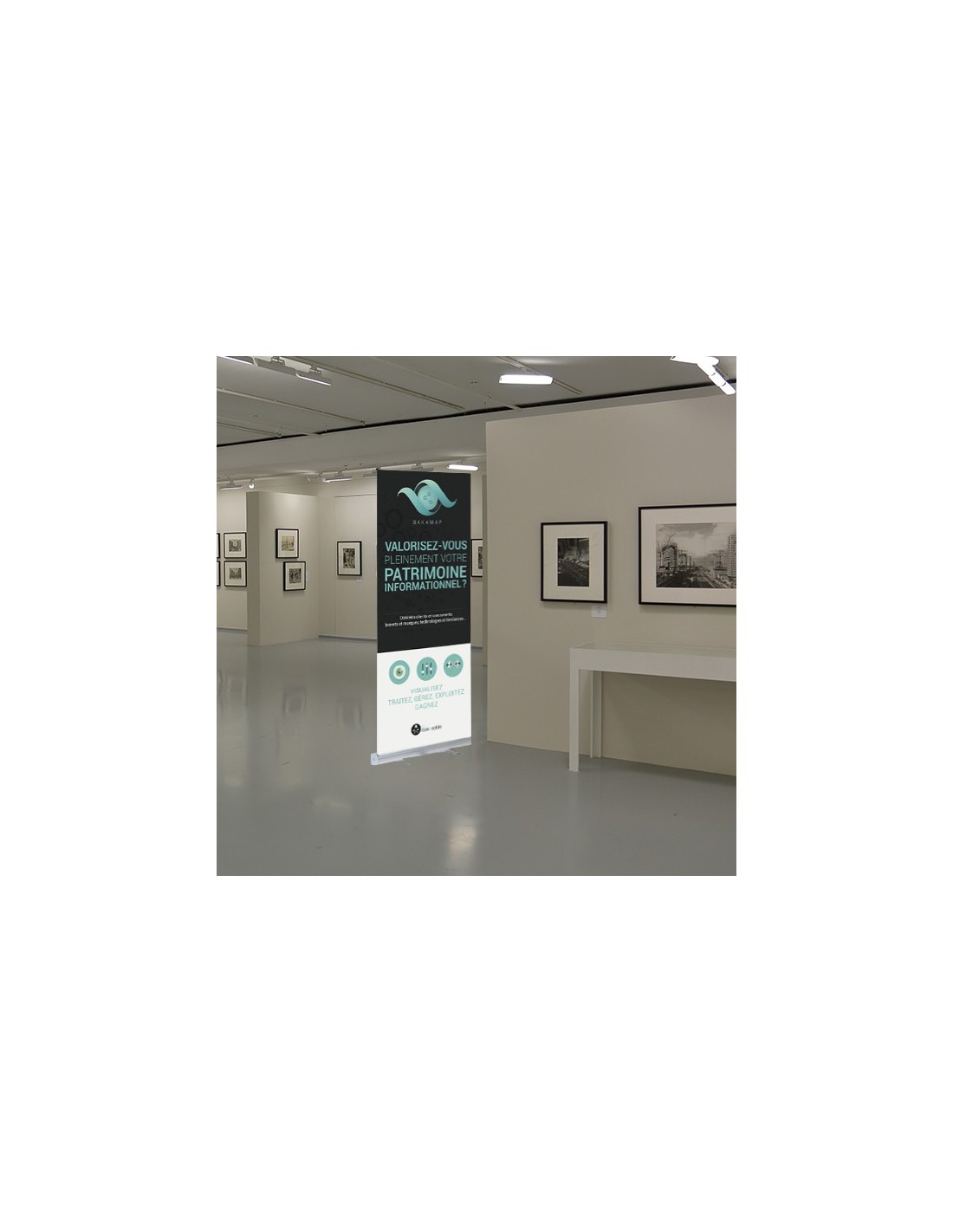 Kakémono stable sur deux pieds pour affichage dans les salons, foires, expositions.