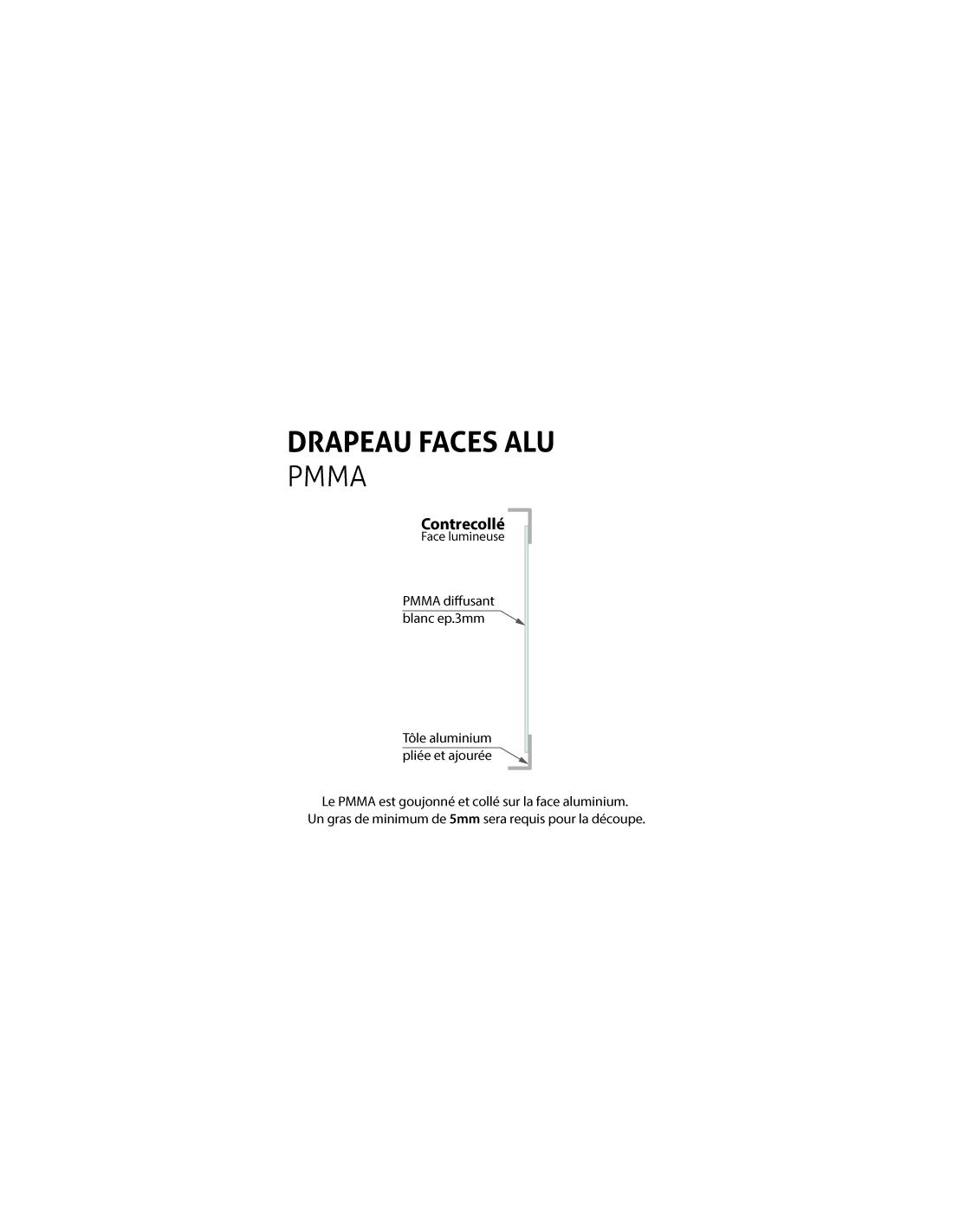 Panneau drapeau lumineux, avec faces aluminium ajourée, épaisseur 100 mm permettant d'illuminer votre visuel de façon esthétique.