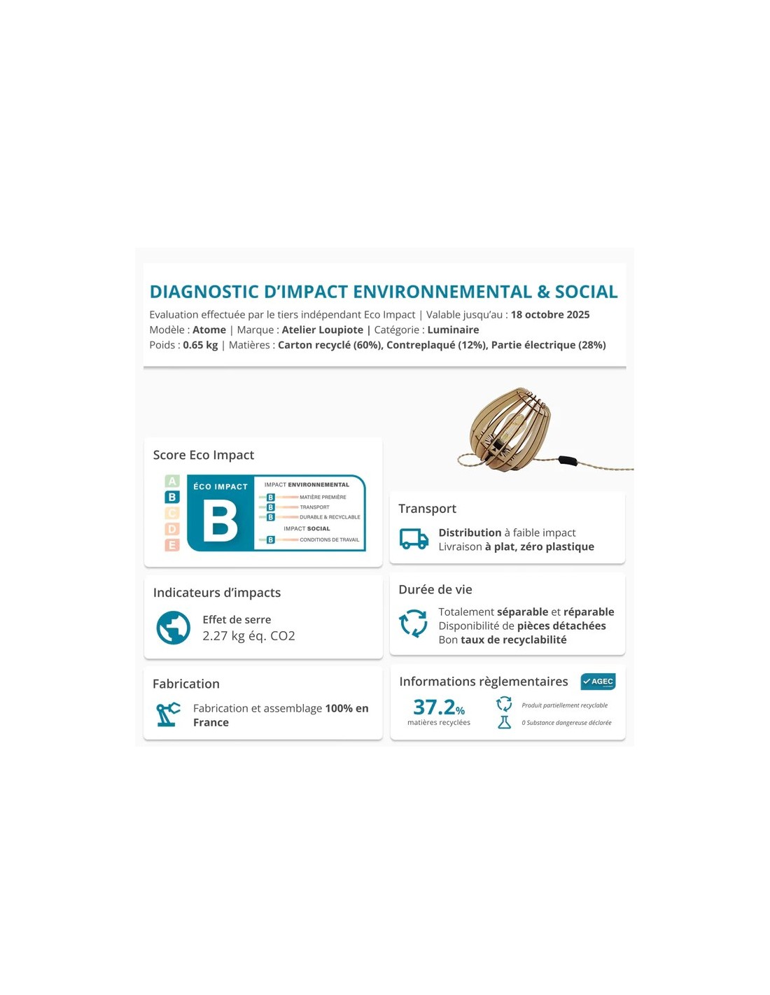 Ce luminaire est conçu à partir de peuplier labellisé FSC® (BV-COC-210386)