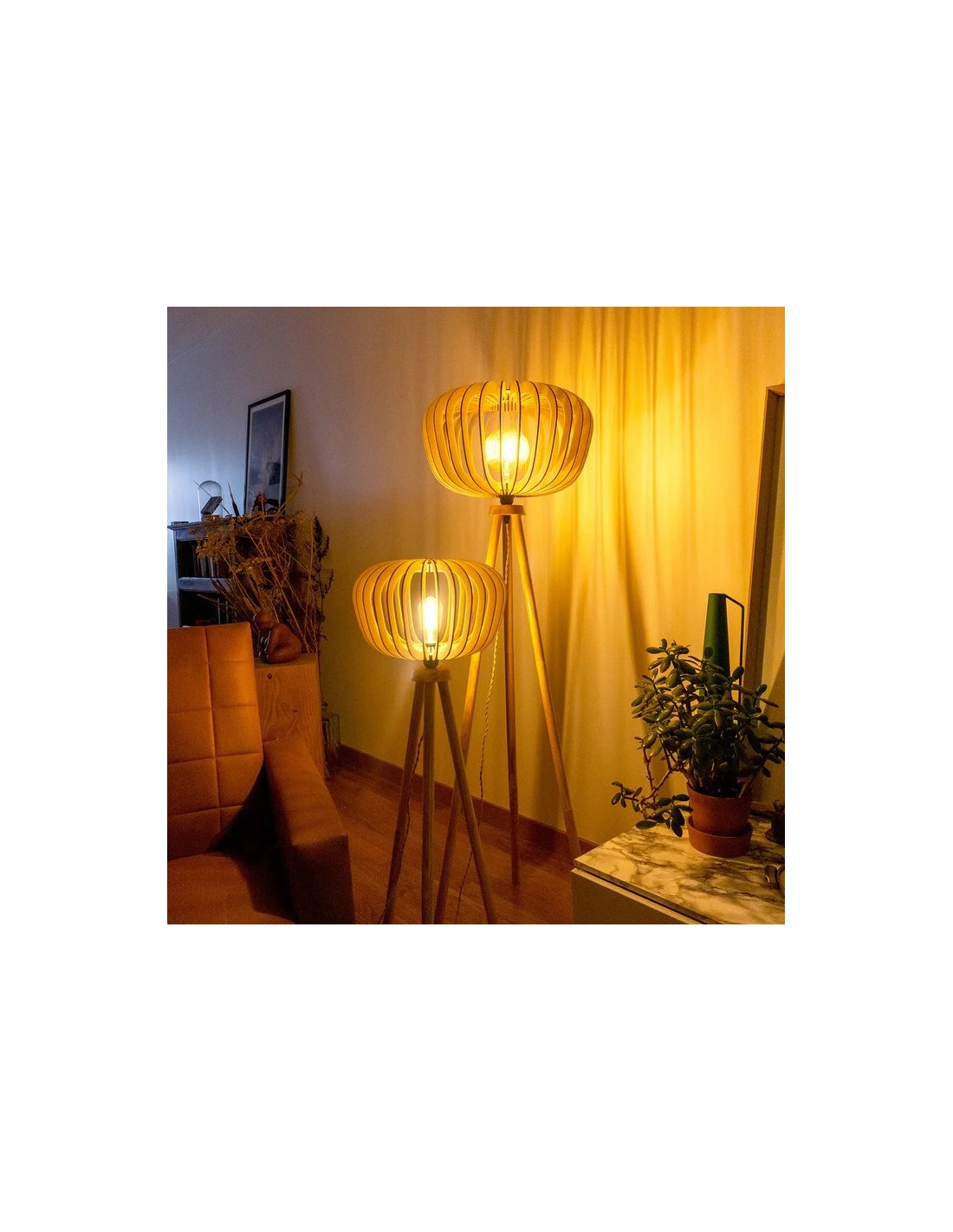 En solo ou en duo, les courbes envoutantes de notre lampadaire Agathe apporteront douceur, rondeur et sérénité à vos espaces. Décoration contemporaine ou minimaliste, son trépied disponible en métal noir ou en bois, saura parfaitement s'adapter à votre intérieur.