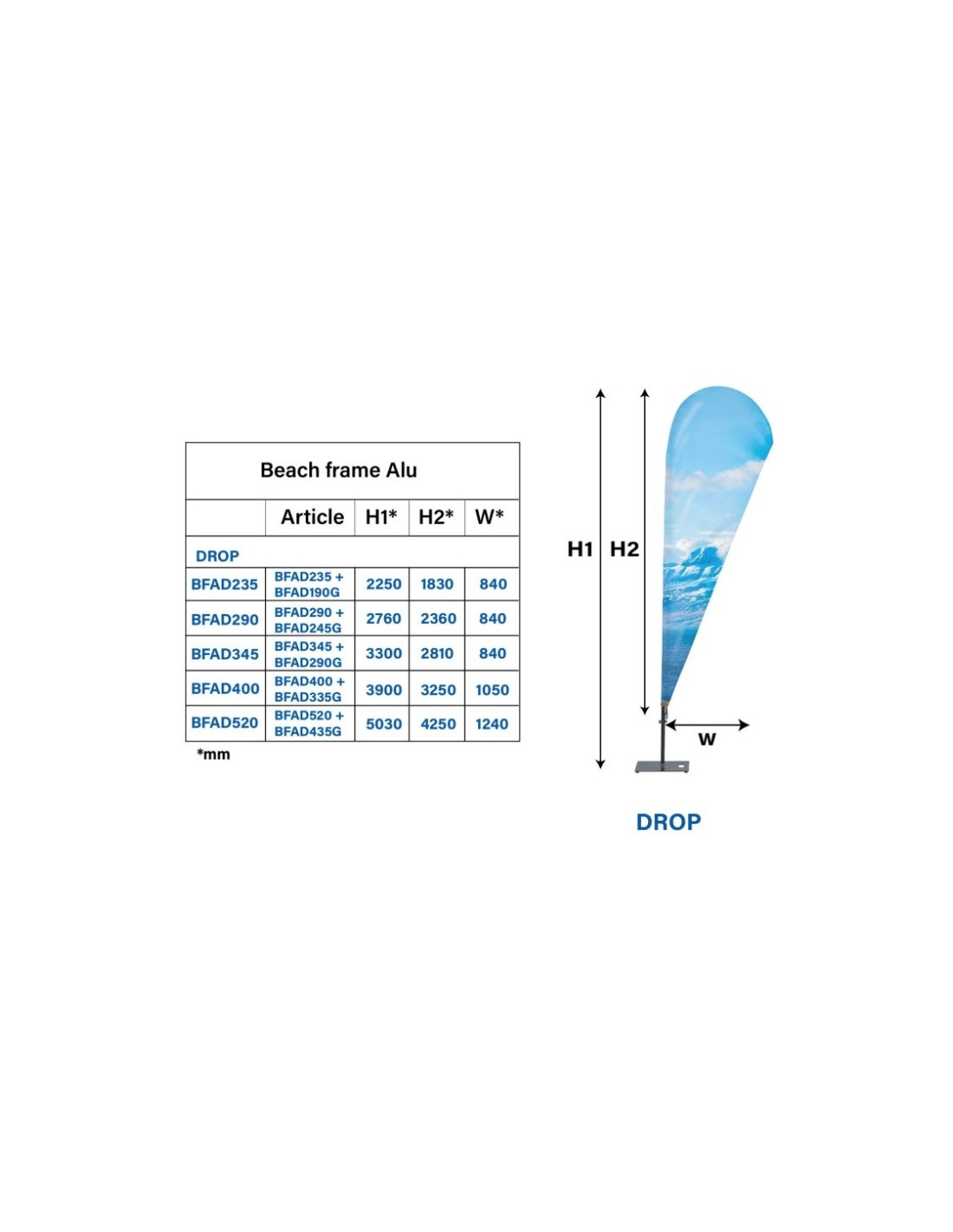 Beach Flag Aluminium personnalisable : Drop - Impression simple ou double face