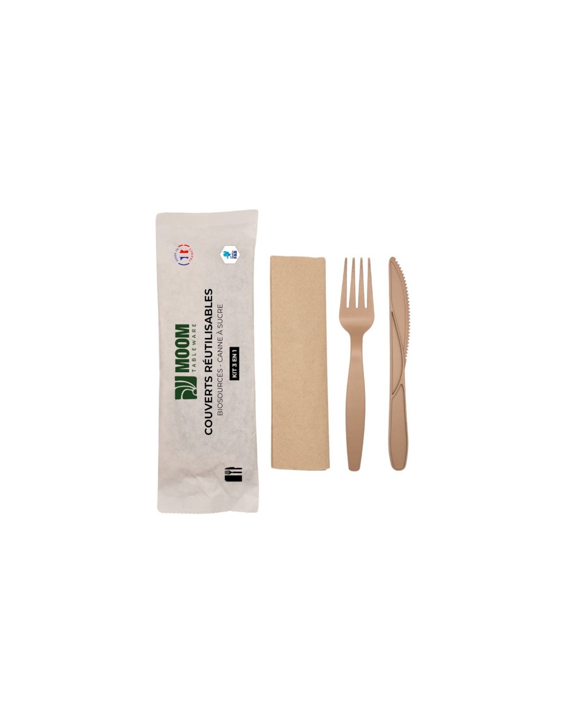 Kit couverts 4 en 1 fourchette couteau cuillère serviette Made in France