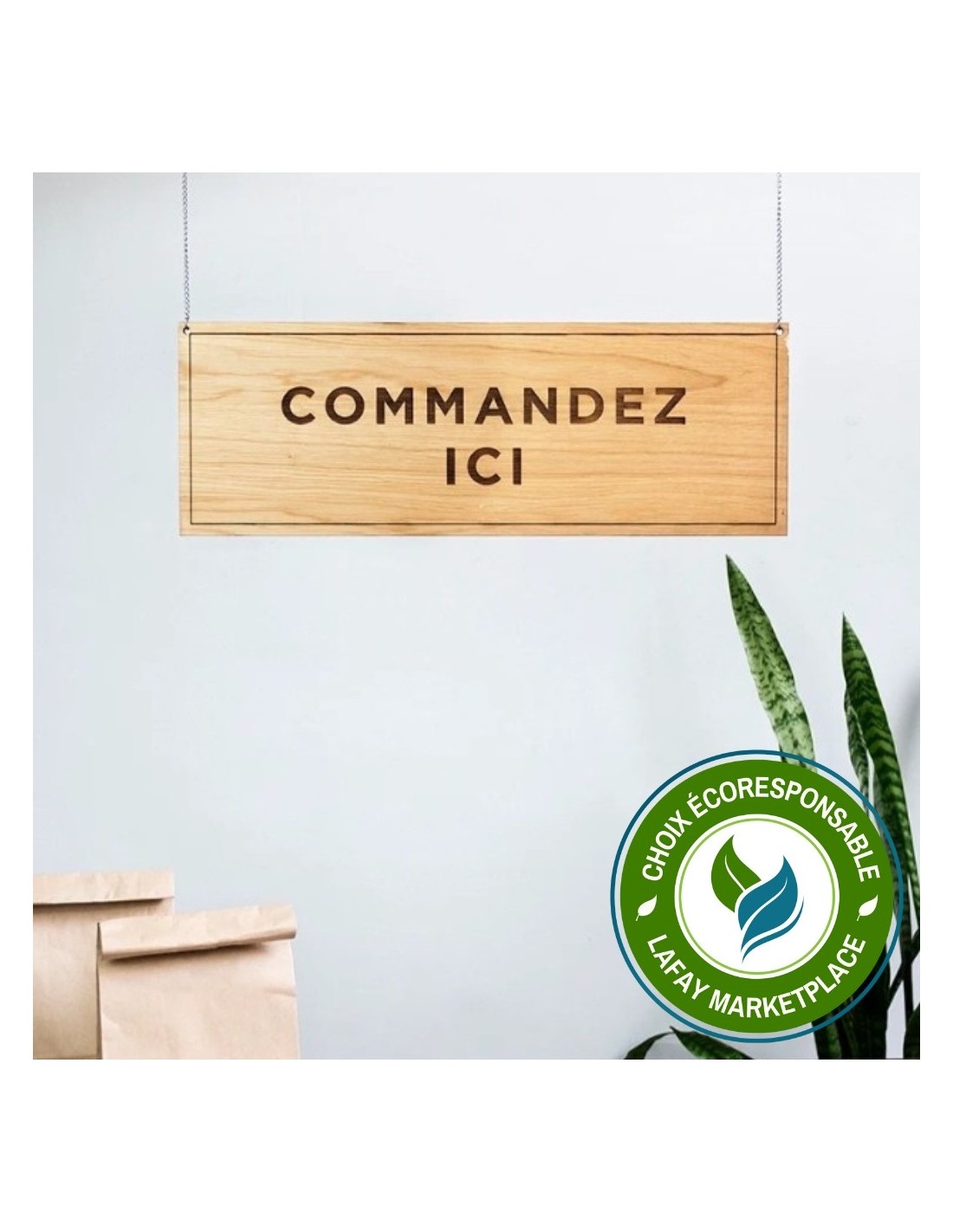 Avec ce panneau en bois "Commandez ici", vous guidez vos clients efficacement tout en restant fidèle à une esthétique naturelle et soignée. Pratique pour les comptoirs, marchés ou foodtrucks, il permet de fluidifier les commandes avec élégance.