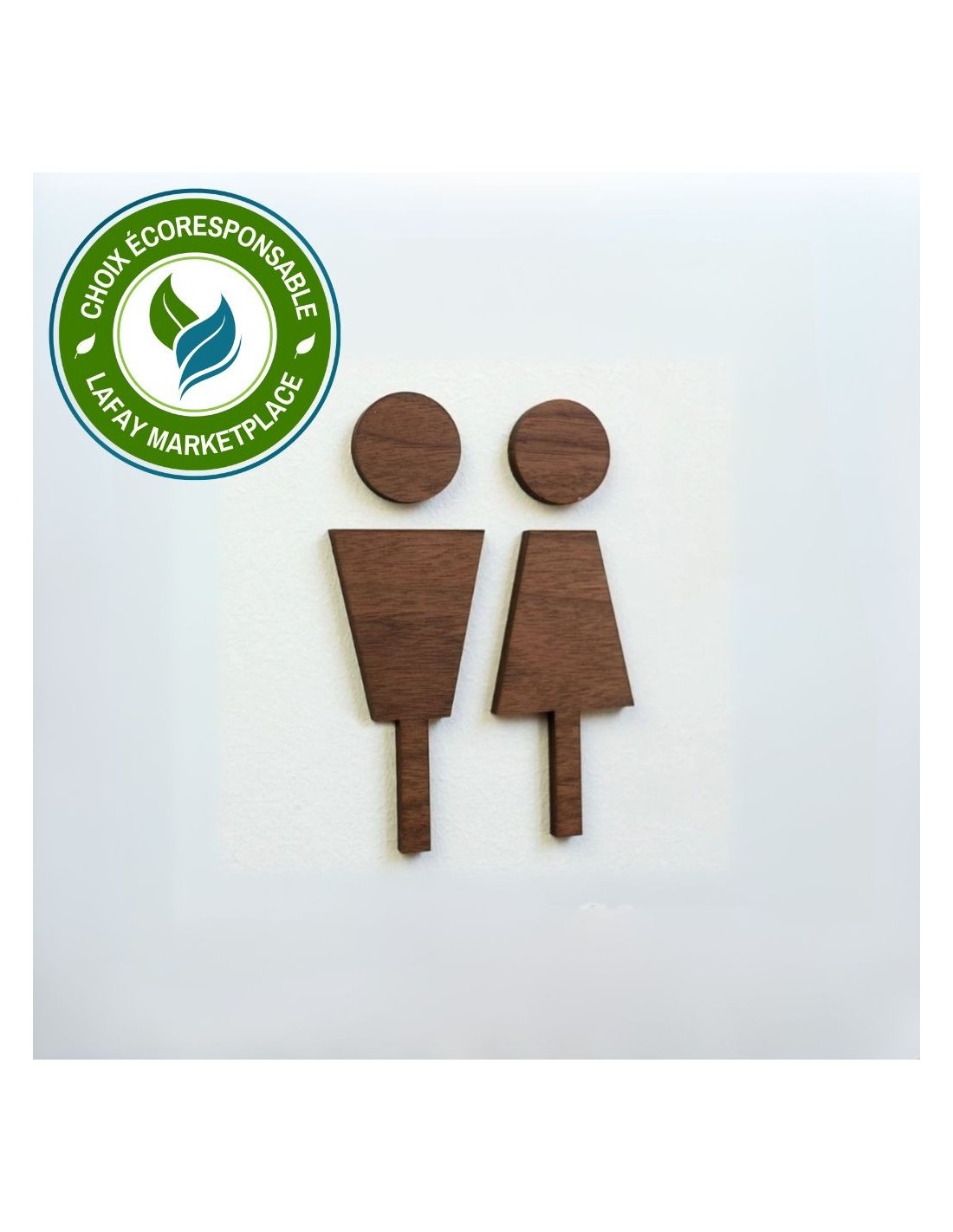 Un petit panneau, un grand classique. Ce modèle "Toilettes H/F" en bois gravé propose une signalétique claire, minimaliste et élégante, pour vos espaces sanitaires. Sans bordure, son design épuré met en avant la matière brute et s'intègre dans tous types d’univers : rustique, moderne ou événementiel.