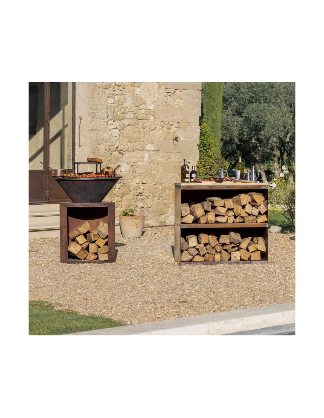 Entièrement conçue en acier corten, elle se distingue par sa robustesse et sa durabilité. L'acier corten, réputé pour sa résistance aux intempéries et à la corrosion, confère à cette desserte une longévité exceptionnelle, même en extérieur. Son design moderne et épuré s'intègre parfaitement dans tous types d'environnements, qu'il s'agisse d'une cuisine contemporaine, d'un jardin ou d'une terrasse.