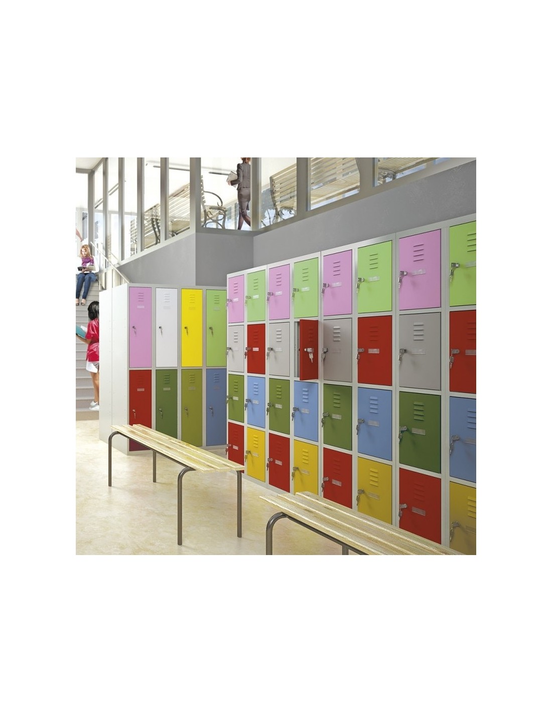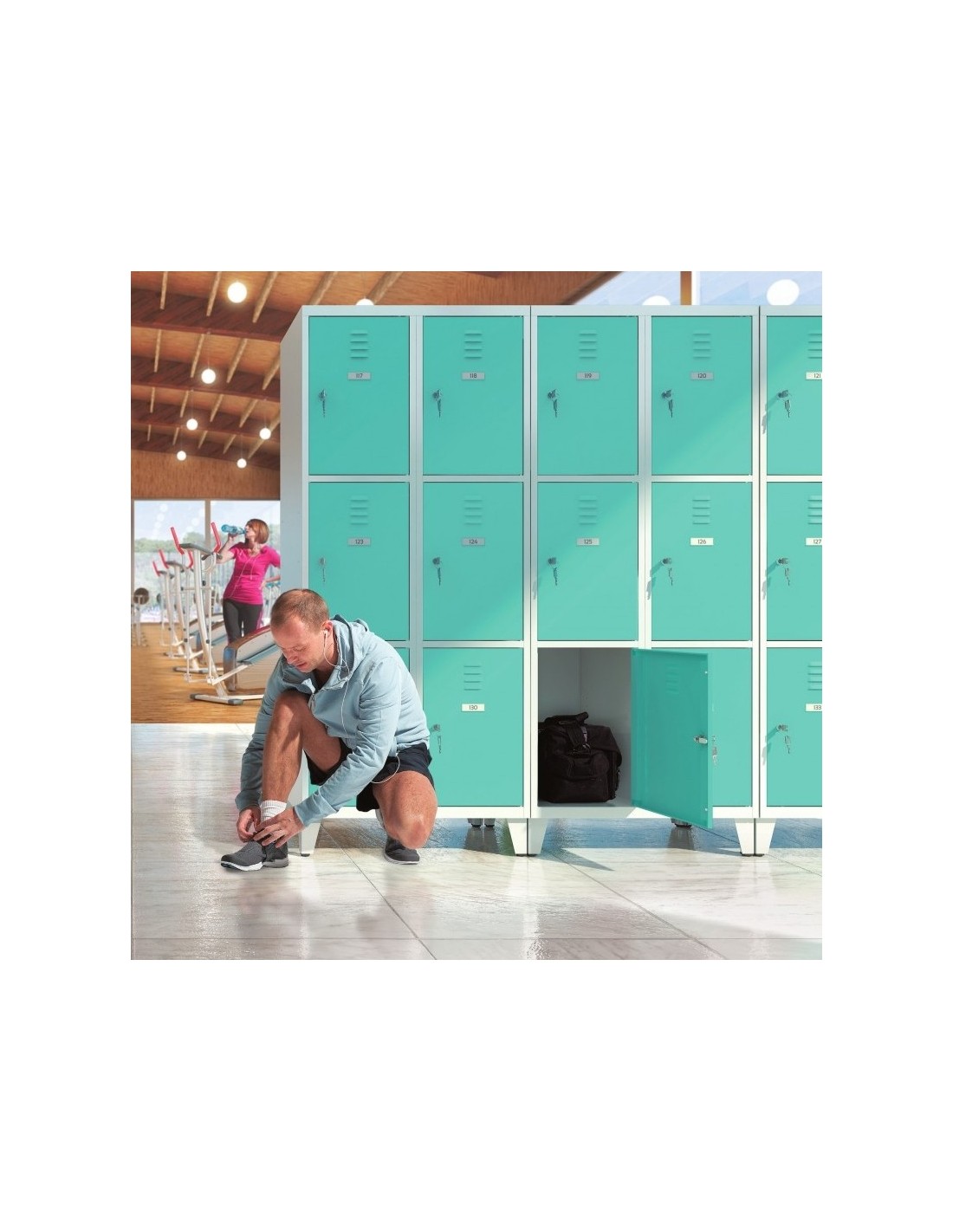 Chaque casier est muni d’une porte ventilée avec porte-étiquette intégré et pré-perçage pour serrure ou cadenas, assurant à chaque utilisateur un espace privé et bien identifié. Son design épuré et ses finitions résistantes s’intègrent harmonieusement à tous les environnements professionnels.