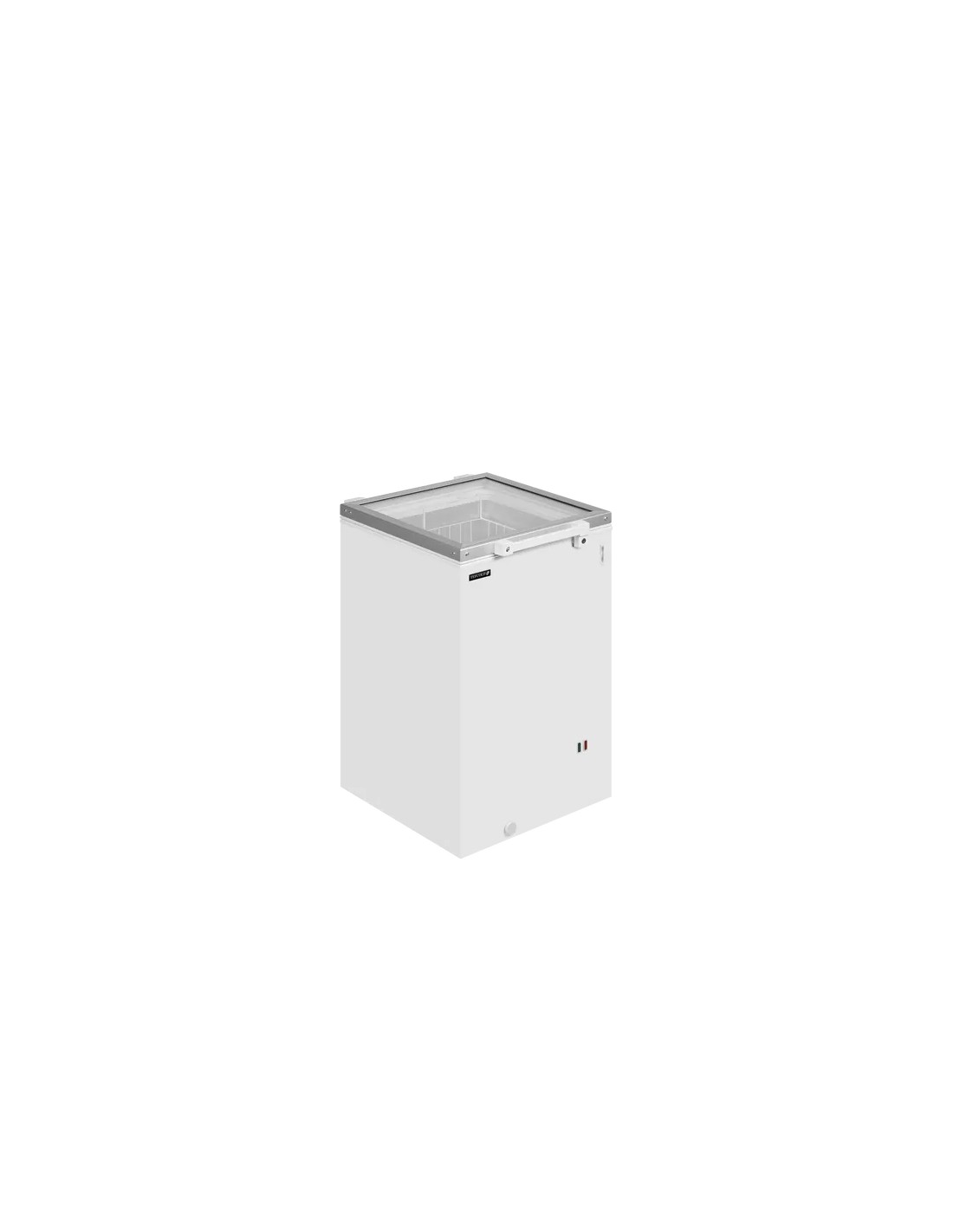 Couvercle vitré plat à charnières Thermomètre Revêtement interne laqué blanc Panier Roulettes avec freins température -24 à -14 °C Classe climatique 4 Poids brut / net 43 / 35 kg Volume brut / net 115 / 105 l Design et matériaux Nombre et type de couvercles 1 couvercle verre trempé à charnières Nombre et type de paniers 1 Panier métallique Nombre de séparateurs 0 pces Vitrage de sécurité Oui Type de caisson - Roulettes 4 roulettes doubles Finition extérieure Blanc Finition intérieure Acier peint en blanc Éclairage intérieur Non Serrure Non Froid et fonctions Type de régulation Mécanique Type de réfrigération Statique Type de dégivrage Manuel Fluide frigorigène R600a Charge de gaz 60 g Puissance et consommation Classe énergétique Consommation d'énergie 1.15 kWh/24h Consommation énergétique annuelle 419.75 kWh/an Indice d’efficacité énergétique 35.4 Vol EEI 116 l Puissance consommée 80 W Tension / Fréquence 220-240/50 V/Hz Niveau sonore 45 db(A) Thermomètre Oui Dimensions Dimensions intérieures (LxPxH) 435 x 435 x 755 mm Dimensions extérieures (LxPxH) 550 x 630 x 930 mm Dimensions emballées (LxPxH) 655 x 600 x 955 mm