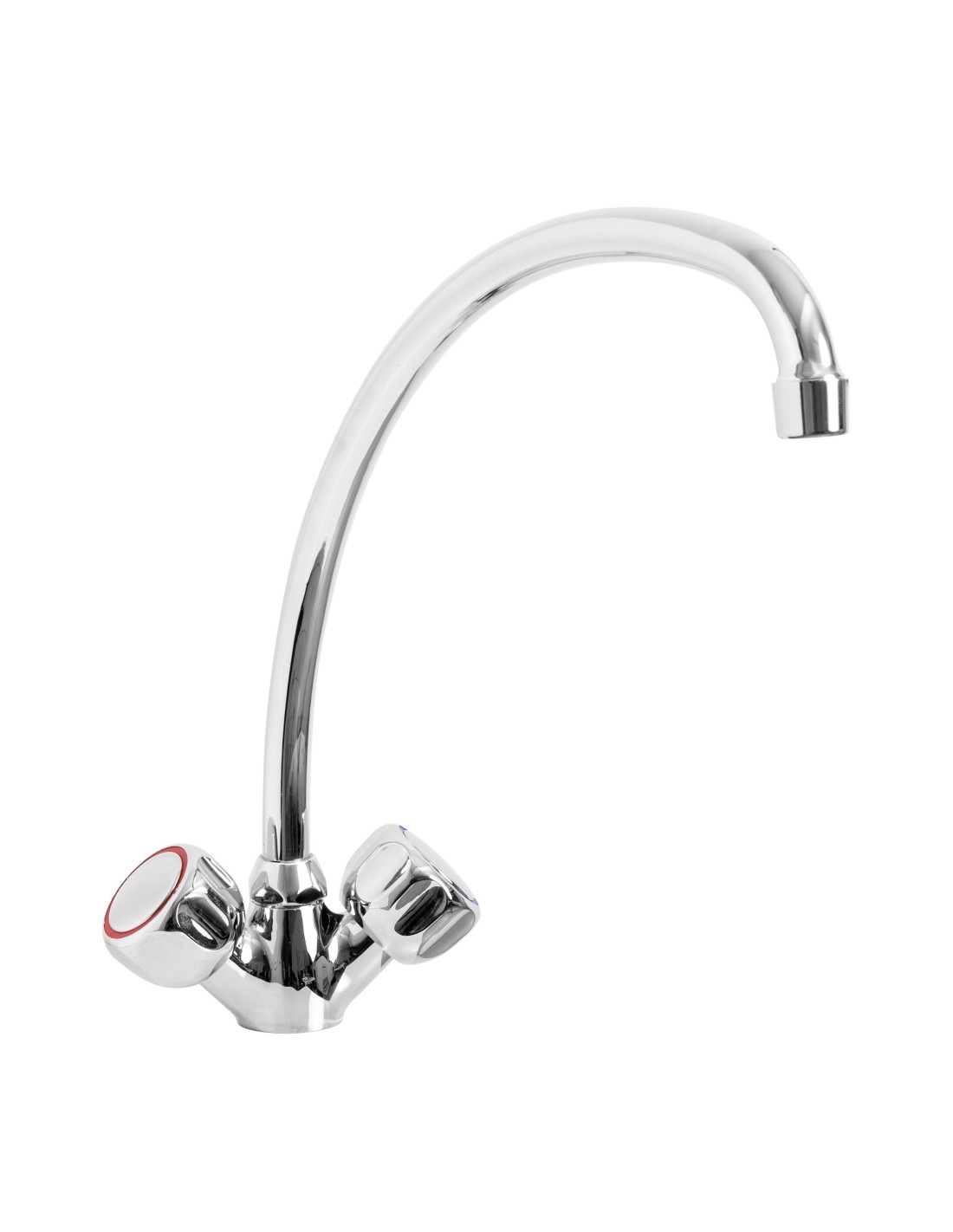 Robinet mélangeur monotrou, base ø 32 mm Col de cygne orientable ø 18 mm Débit de 17 L/min à 4 Bar Livré avec flxibles inox embout femelle 3/8 Clapet anti retour et fitres à l'intérieur des flxibles inox Conforme à la norme ACS (Attestation de conformité sanitaire)