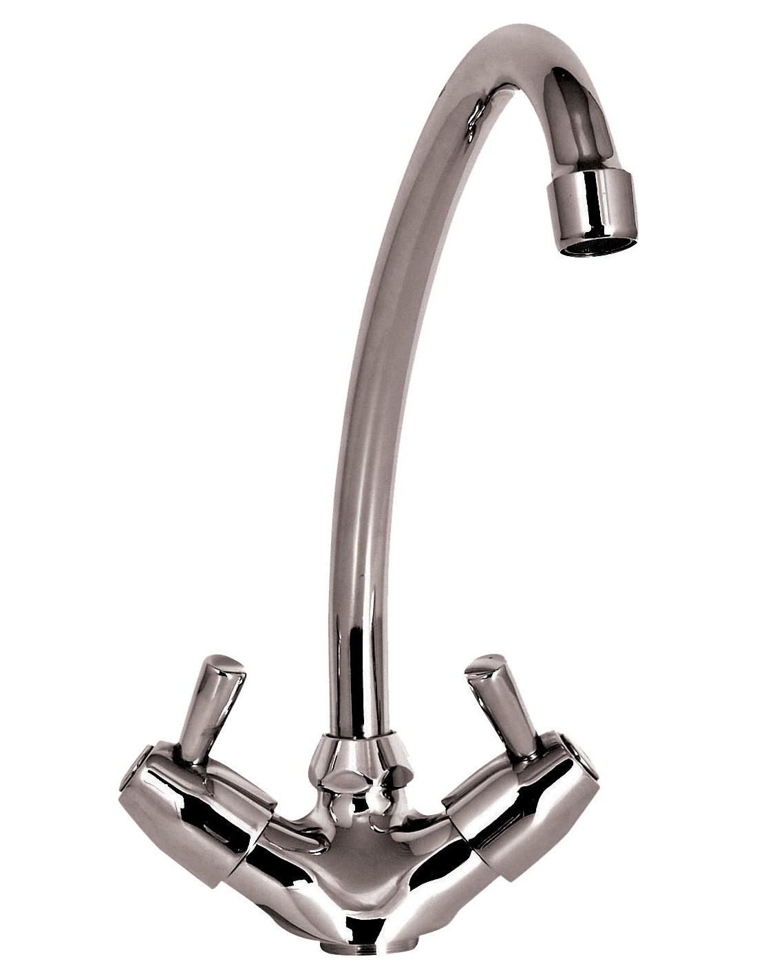 Robinet mélangeur monotrou, 1/4 de tour, base ø 32 mm Col de cygne orientable ø 18 mm Débit de 17 L/min à 4 Bar Livré avec flexibles inox embout femelle 3/8 Clapet anti retour et filtres à l’intérieur des flexibles inox Conforme à la norme ACS (Attestation de conformité sanitaire)