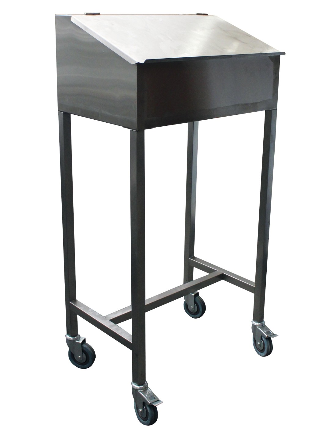 PUPITRE INOX 304, SUR PIETEMENT AVEC ROULETTES CHAPE ZINGUEE, SANS FERMETURE A CLEFS L (en mm) : 560 - P (en mm) : 510 H (en mm) : 1 100