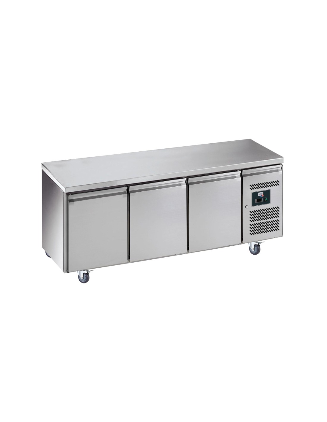 DESSERTE REFRIGEREE INOX, -2/+8°C, 3 PORTES 430X333 MM, SUR ROULETTES Ø 100MM Tension : 230V Mono - Puissance (en kW) : 0.66 L (en mm) : 1 795 - P (en mm) : 600 H (en mm) : 850 - Cont. (en L) : 386