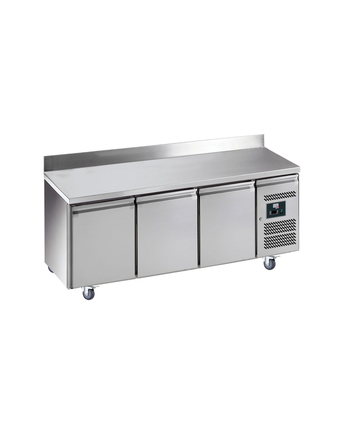 DESSERTE REFRIGEREE INOX DOSSERET 100X20MM -2/+8°C 3 P. GN1/1, SUR ROULETTES Ø 100 M Tension : 230V Mono - Puissance (en kW) : 0.28 L (en mm) : 1 795 - P (en mm) : 700 H (en mm) : 850 - Cont. (en L) : 465 Type de gaz : R600A - Quantité de gaz (g) : 120
