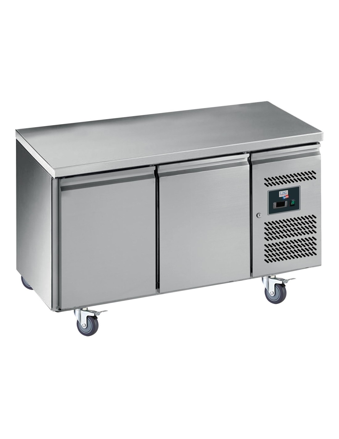 DESSERTE REFRIGEREE INOX CENTRALE -2/+8°C DESSUS INOX, 2 P. 600X400MM, SUR ROULETTES Ø 100MM