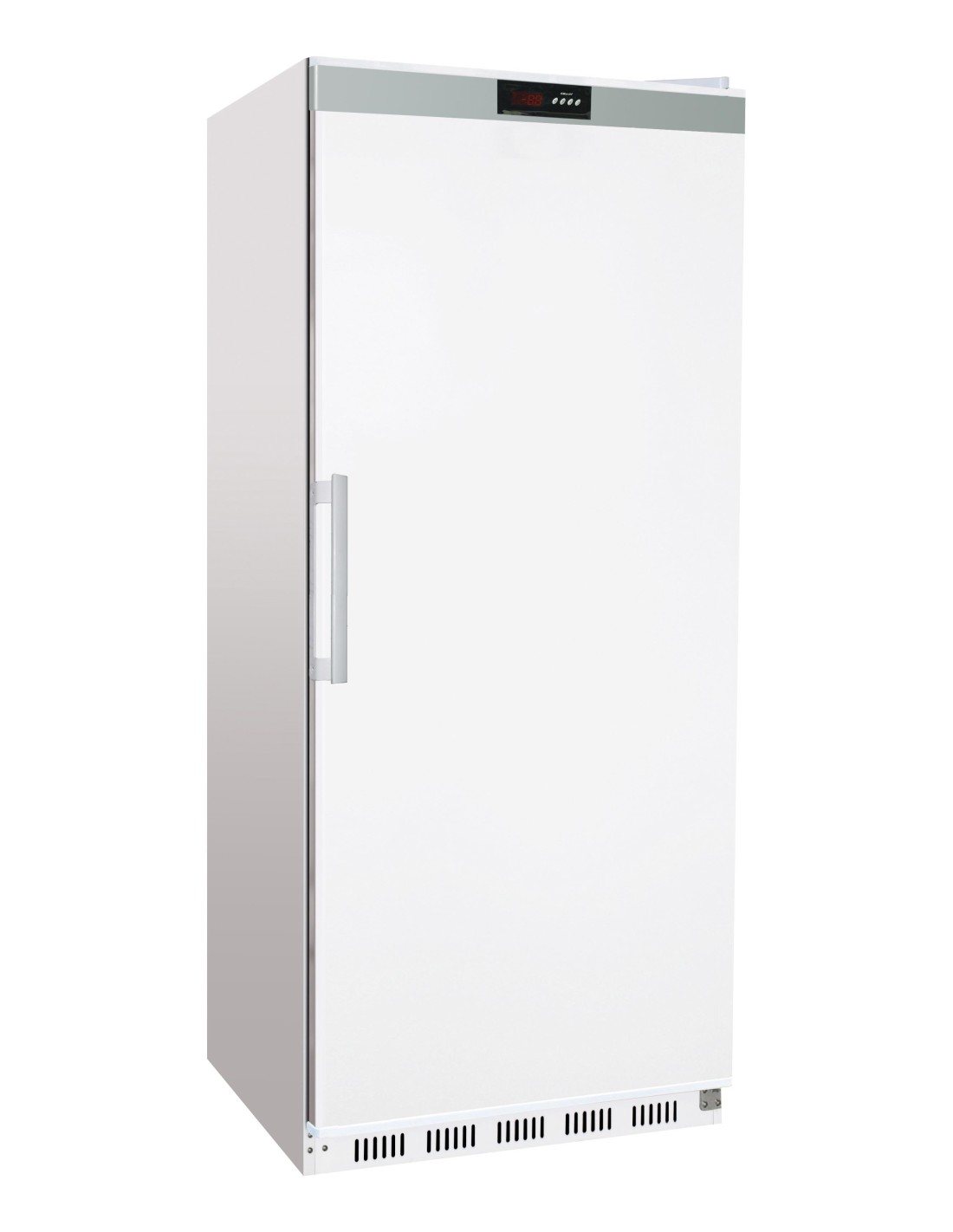 ARMOIRE REFRIGEREE BLANCHE, +2/+8°C AVEC 3+1 CLAYETTES, FERMETURE A CLE, 600L Tension : 230V Mono - Puissance (en kW) : 0.185 L (en mm) : 782 - P (en mm) : 712 H (en mm) : 1 895 - Cont. (en L) : 598L BRUT Type de gaz : R600A - Quantité de gaz (g) : 100