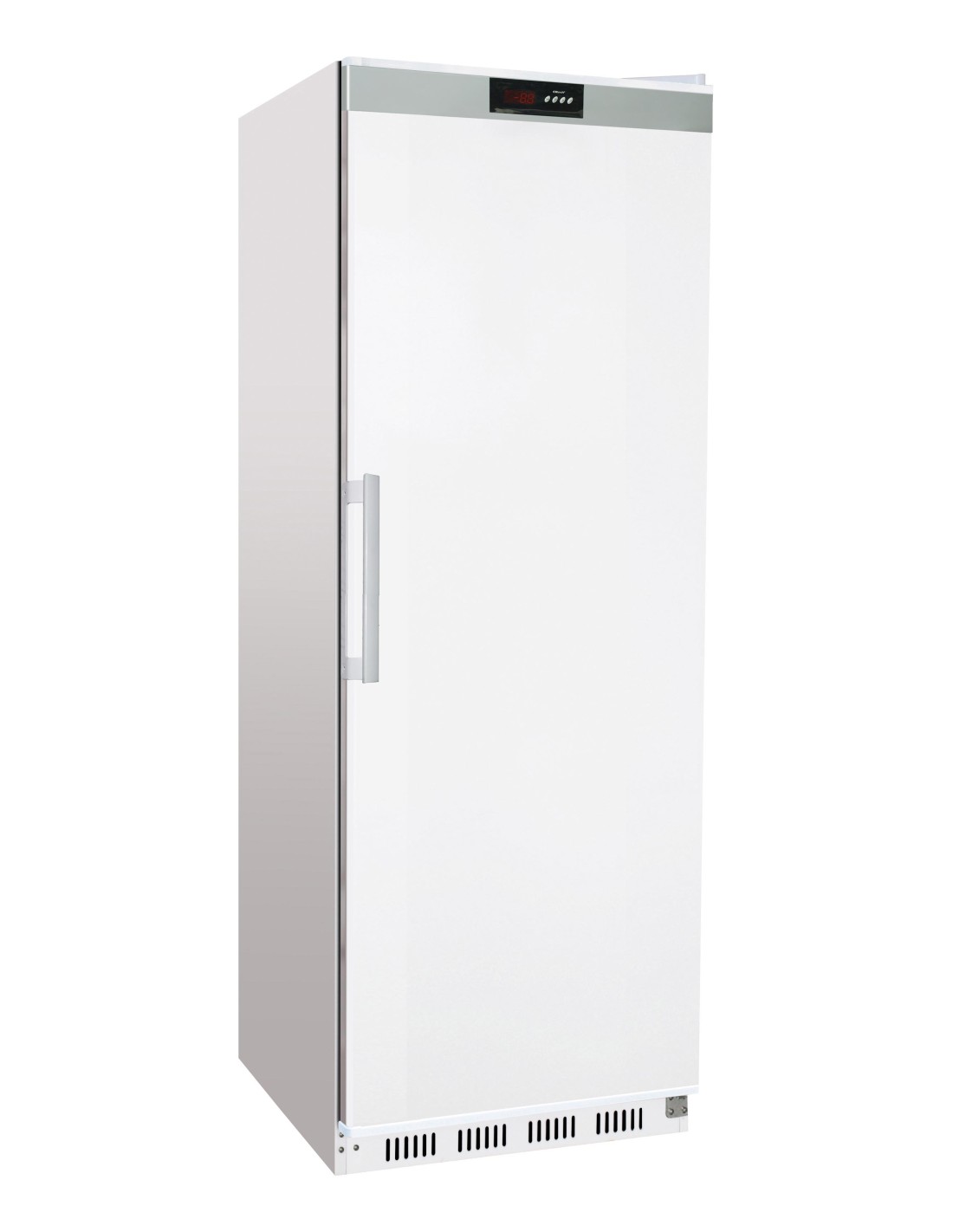 ARMOIRE REFRIGEREE BLANCHE, -18/-24°C, AVEC 7 CLAYETTES, FERMETURE A CLE Tension : 230V Mono - Puissance (en kW) : 0.21 L (en mm) : 605 - P (en mm) : 604 H (en mm) : 1 855 - Cont. (en L) : 391L BRUT Type de gaz : R600A - Quantité de gaz (g) : 90