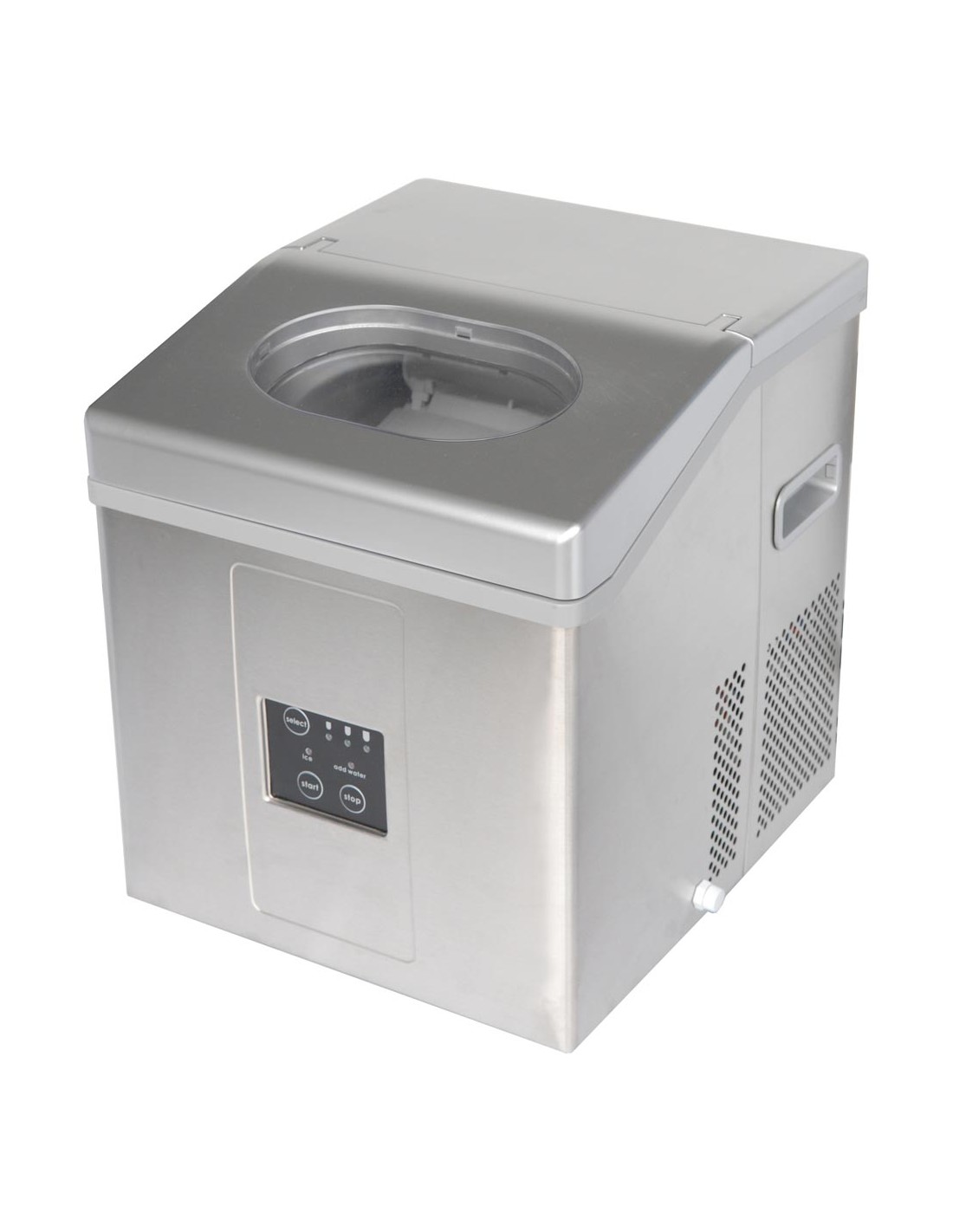 MACHINE A GLACONS CREUX RONDS CARROSSERIE INOX CAP.15KG/24H, RESERVE 2 KG, GAZ R600A Tension : 230V Mono - Puissance (en kW) : 0.2 L (en mm) : 360 - P (en mm) : 398 H (en mm) : 414 - Type de gaz : R600A Quantité de gaz (g) : 27