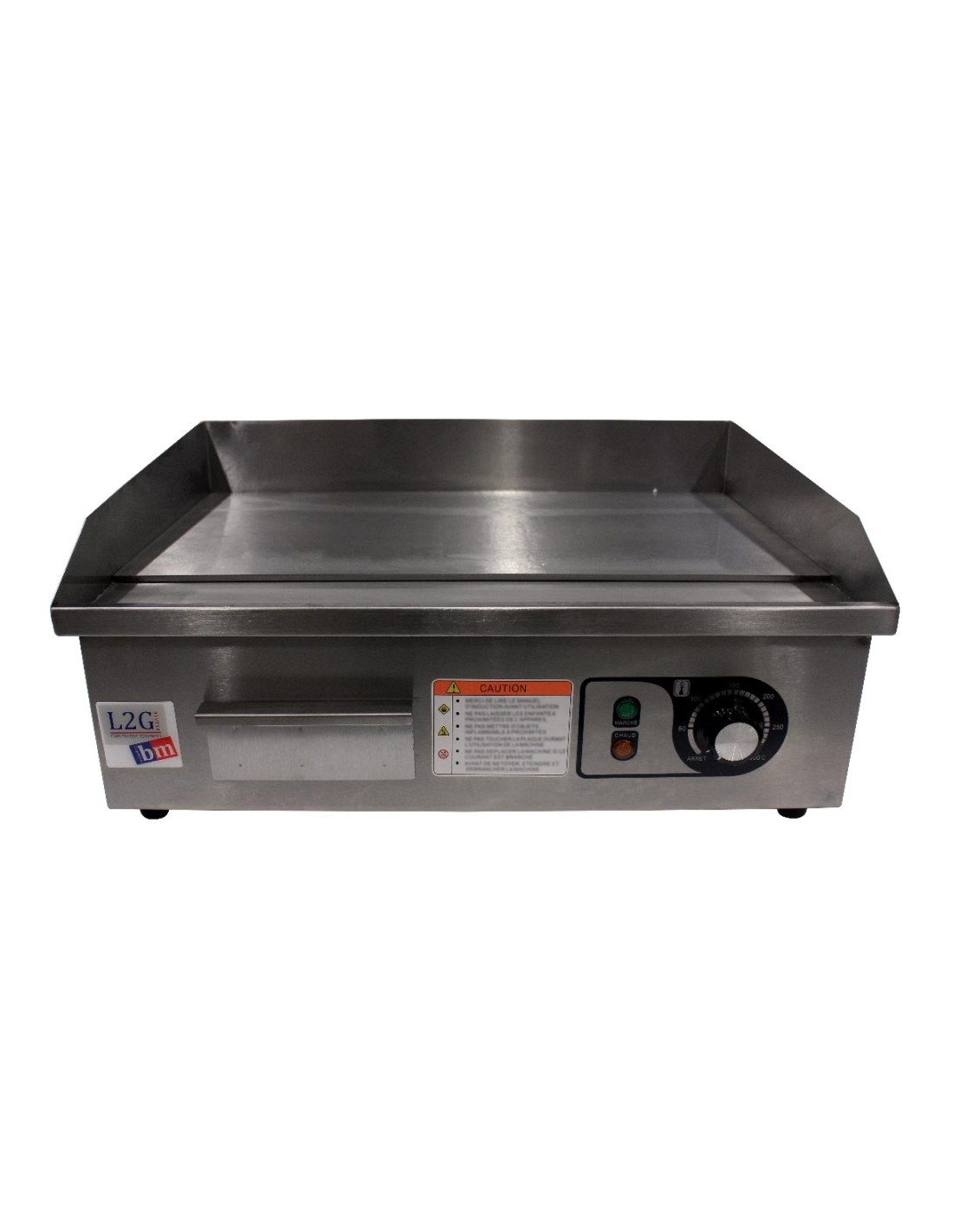 Construction inox Alimentation électrique: 230V mono Dessus avec revêtement au chrome dur pour faciliter le nettoyage Thermostat de régulation 50 à 300°C Tiroir de récupération des graisses 1 zone de cuisson