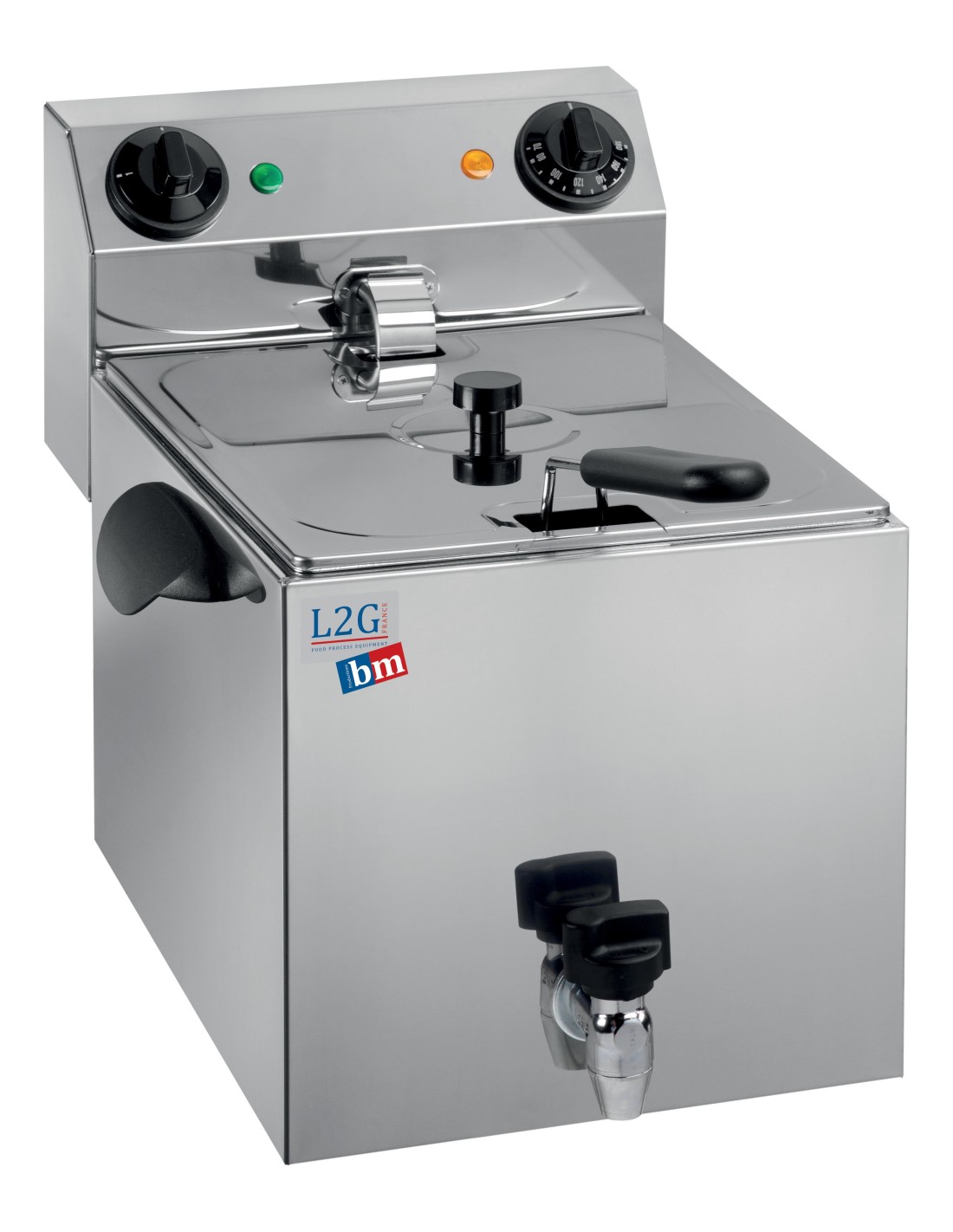 Construction tout inox Température réglable en continu de 50°C à 180°C Robinet de vidange en façade Panier inclus Résistance amovible Thermostat de sécurité Comprend un panier à friture et un couvercle en acier inoxydable Cet appareil ne se prête pas à un usage professionnel intensif