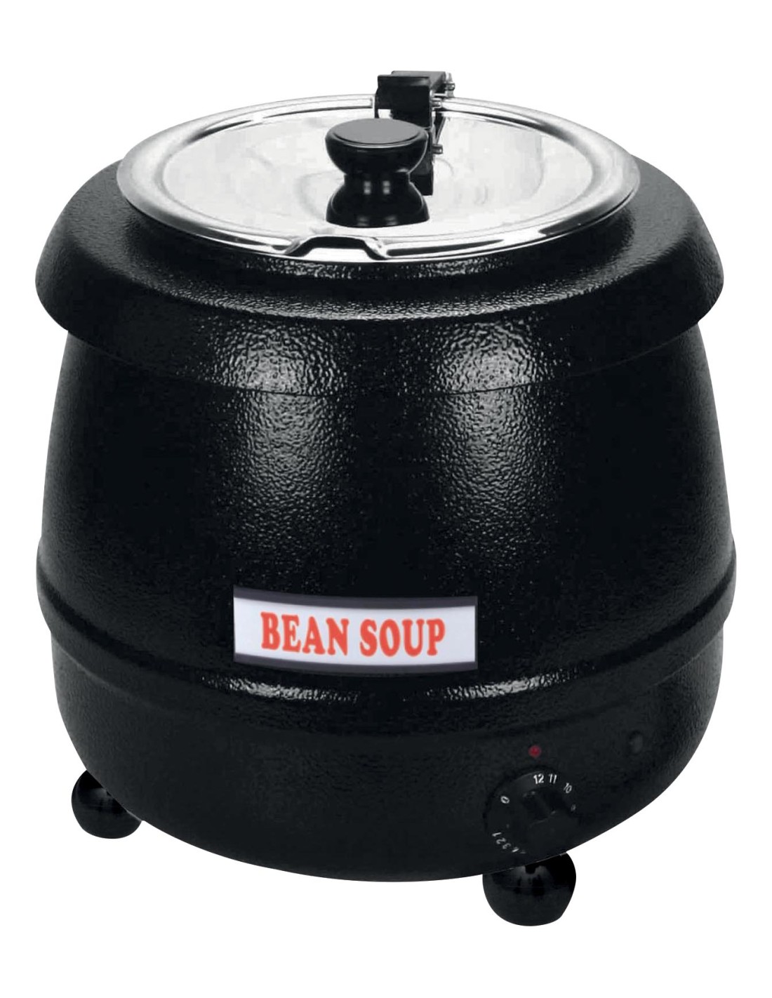 MARMITE A SOUPE CARROSSERIE NOIRE, COUVERCLE INOX A CHARNIERES, REGLAGE DE PUISSANCE Tension : 230V Mono - Puissance (en kW) : 0.4 H (en mm) : 370 - D (en mm) : 350 Cont. (en L) : 8