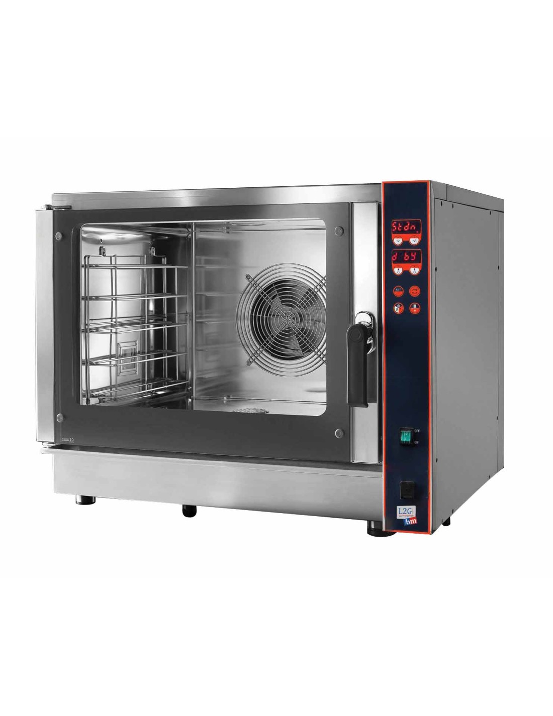FOUR ELECTRIQUE MIXTE PROGRAMMABLE 5 NIV.GN1/1 OU 600X400 MM VENTILATION LATERALE, INJECTION D'EAU Fourni avec câble électrique et avec prise Puissance (en kW) : 6.45 - L (en mm) : 925 P (en mm) : 785 - H (en mm) : 745