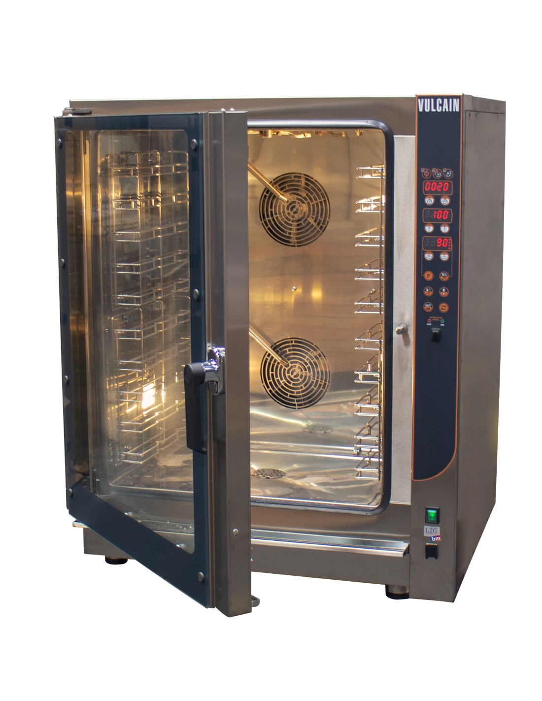 FOUR ELECTRIQUE MIXTE PROGRAMMABLE 10 NIV.GN1/1 OU 600X400 MM, AUTONETTOYANT, INJECTION D'EAU Tension : 380V Tri + Neutre Puissance (en kW) : 12.7 - L (en mm) : 925 P (en mm) : 805 - H (en mm) : 1 145 Livré sans câble électrique, ni prise