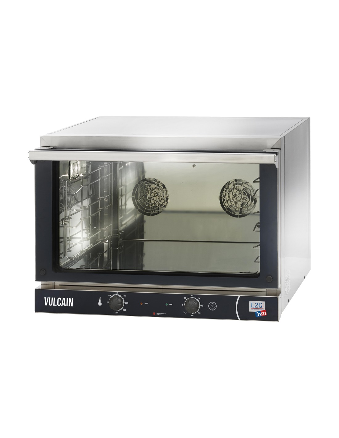 Construction intérieure et extérieure en inox Minuterie intégrée 60 min Thermostat en continu, réglable jusqu'à 280°C Eclairage intérieur Rack intérieur démontable au pas de 104 mm (grilles non fournies) Porte basculante Alimentation électrique : 230 V MONO, 3KW Dim. int. 650x460x350