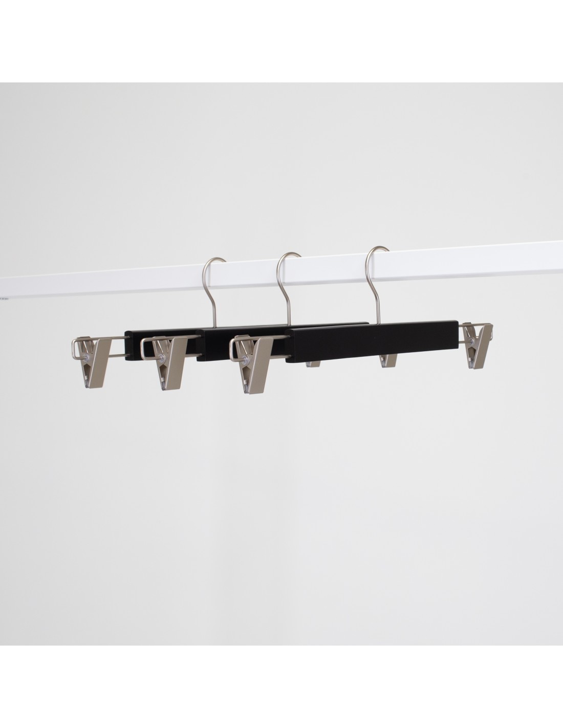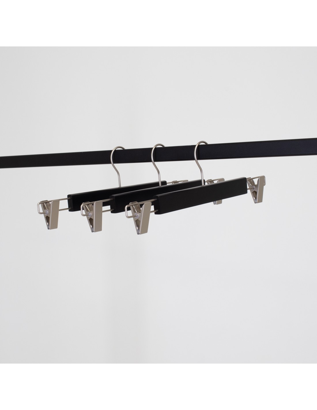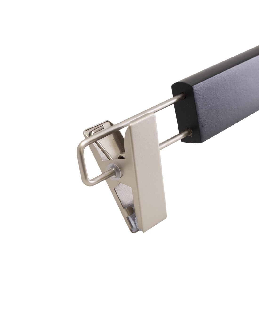 | Cintre pour pantalons et jupes, avec pinces réglables antidérapantes en nickel, largeur 38 cm, bois de lotus finition noir mat, crochet en nickel mat - carton de 100 pcs |