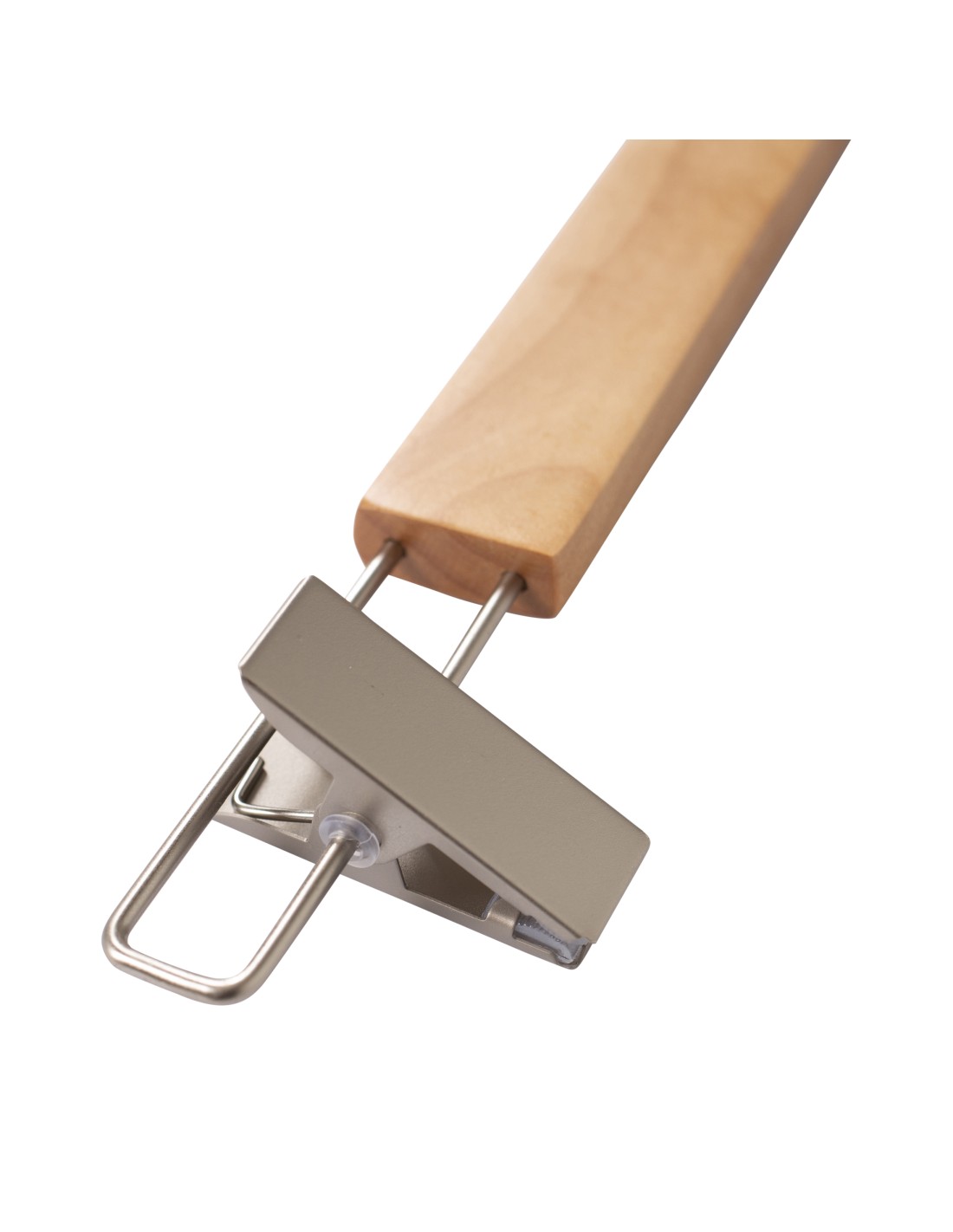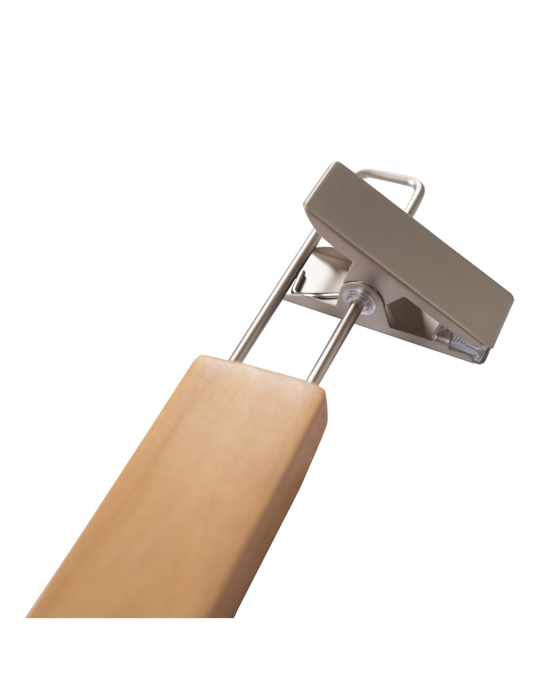 | Cintre pour pantalons et jupes, avec pinces réglables antidérapantes en nickel, largeur 38 cm, bois lotus, finition vernis transparent, crochet en nickel mat - carton de 100 pcs |