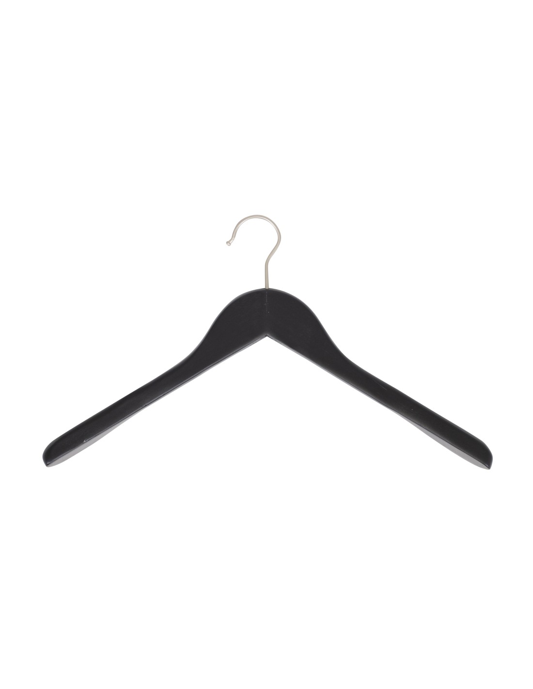 | Cintre en bois pour blazers, vestes et manteaux, légèrement galbé, largeur 41 cm, largeur aux épaules 3 cm, bois de lotus finition noir mat. Crochet en nickel mat - carton de 50 pcs |