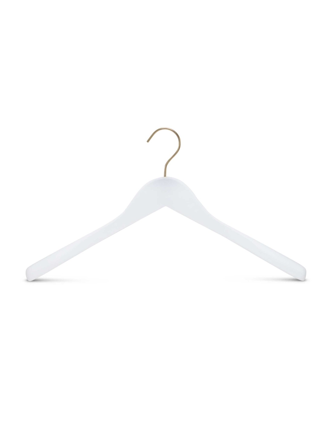Cintre blanc pour vestes, bois de lotus, 41 cm, crochet doré