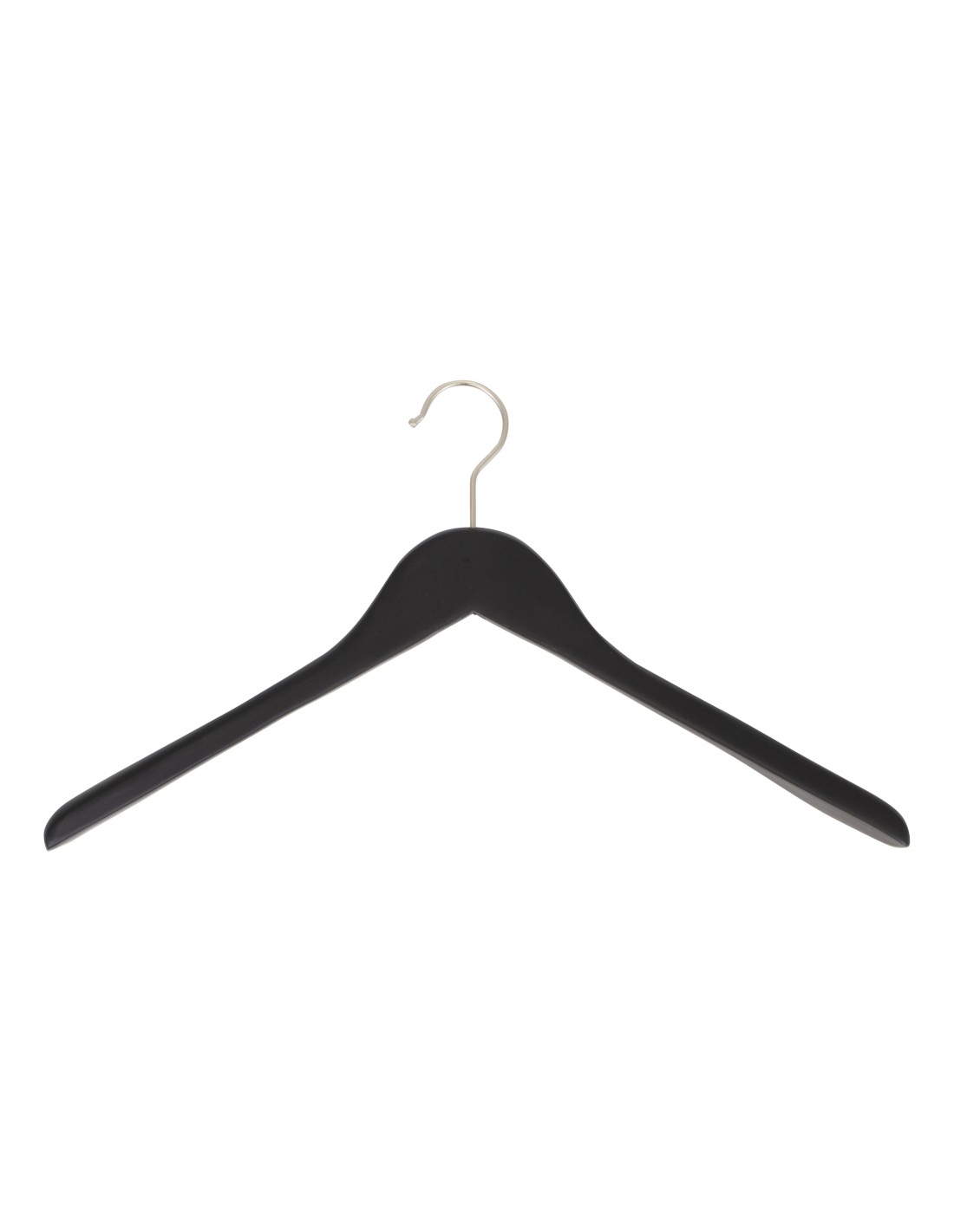 | Cintre en bois pour blazers, vestes et manteaux, légèrement galbé, largeur 44 cm, largeur aux épaules 3 cm, bois de lotus finition noir mat, crochet en nickel - carton de 50 pcs |
