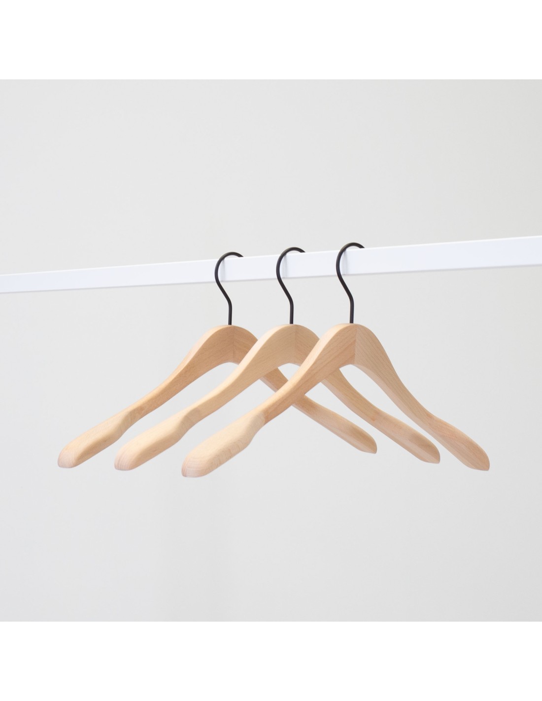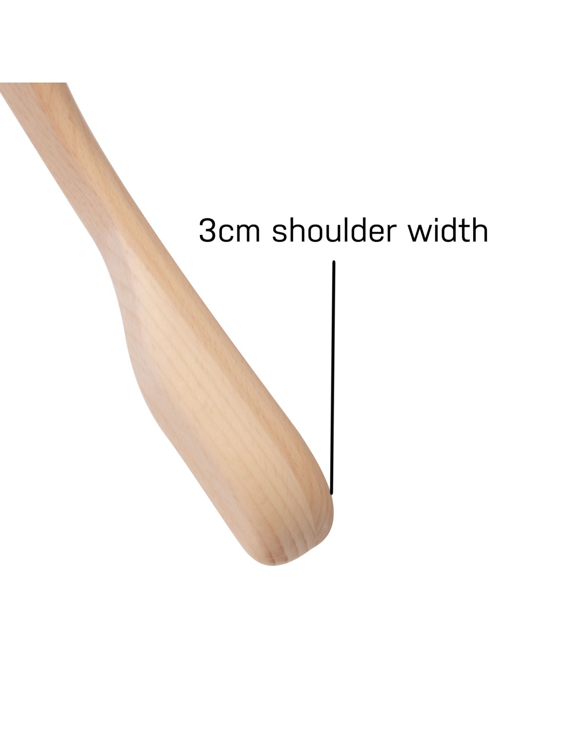 | Cintre droit pour blazer, vestes et manteaux, largeur 44 cm, largeur d'épaules 3 cm, bois de hêtre de qualité A, crochet noir - boîte de 50 pièces |
