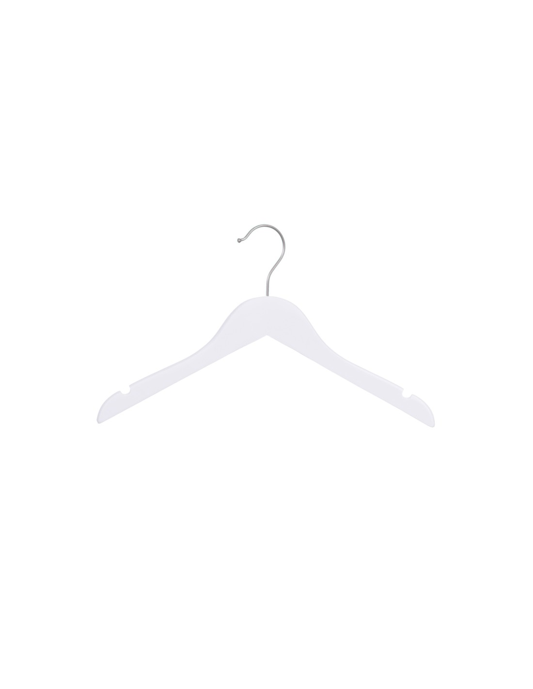 | Cintre légèrement galbé avec encoches, largeur 30 cm, bois de lotus, finition blanc mat, crochet en nickel mat - carton de 100 pcs |