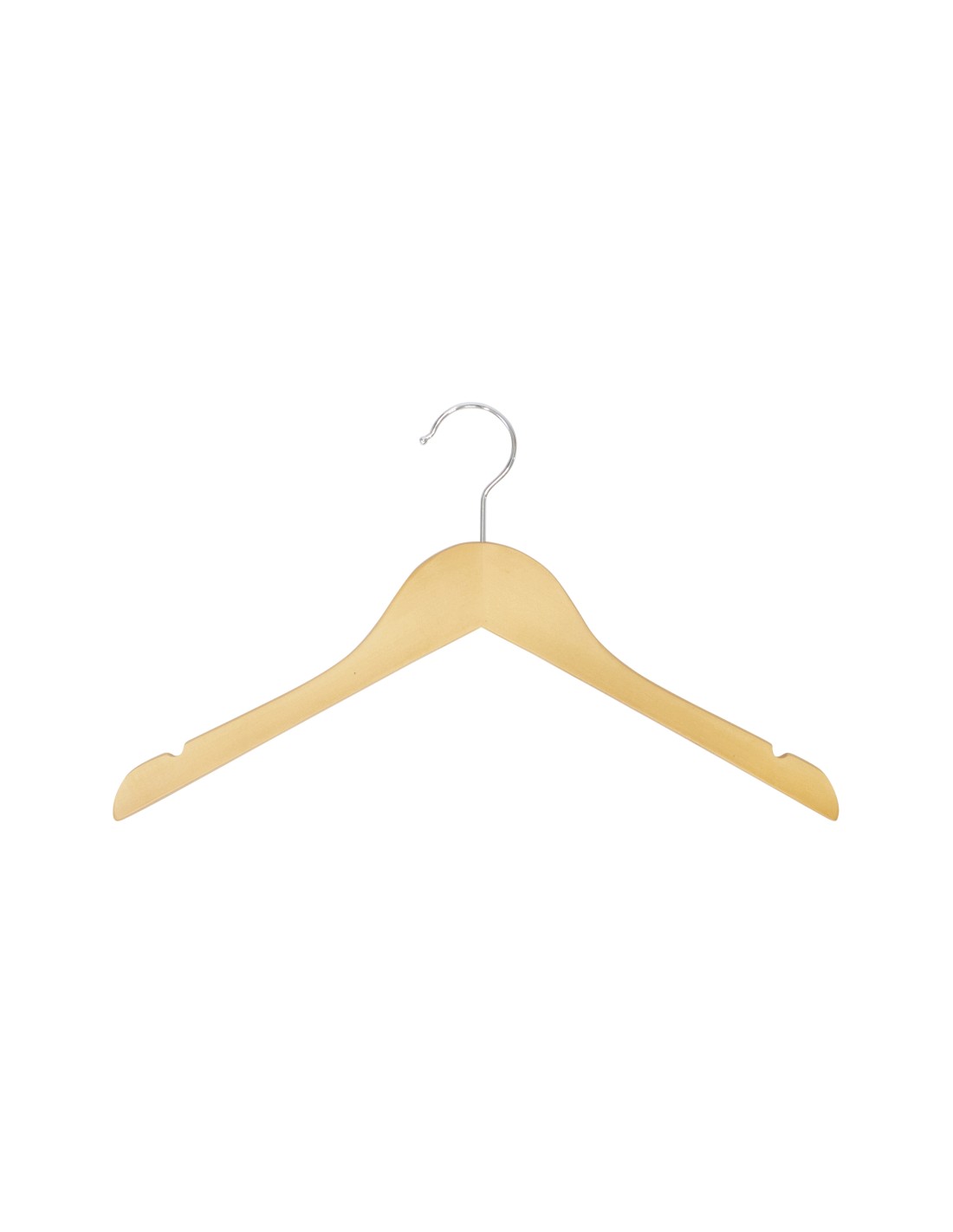 | Cintre légèrement galbé avec encoches, largeur 38 cm, bois de lotus, finition de protection vernis transparent mat, crochet brillant - carton de 100 pcs |