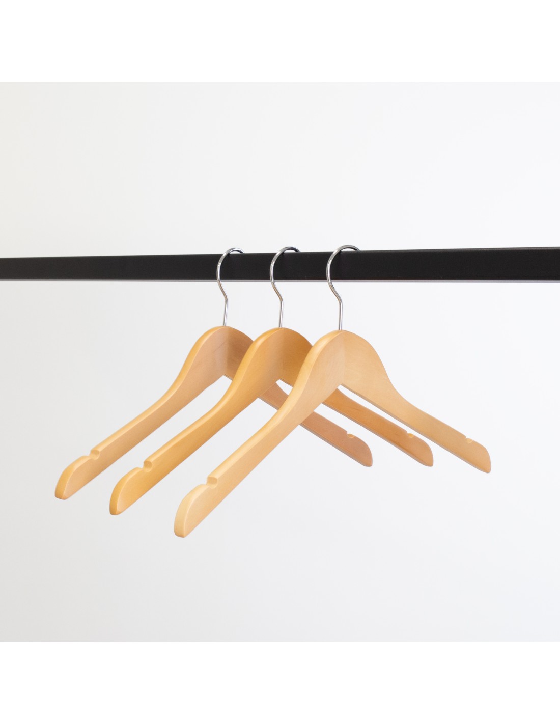 Cintre en bois avec encoches, 38 cm, bois de lotus, crochet brillant