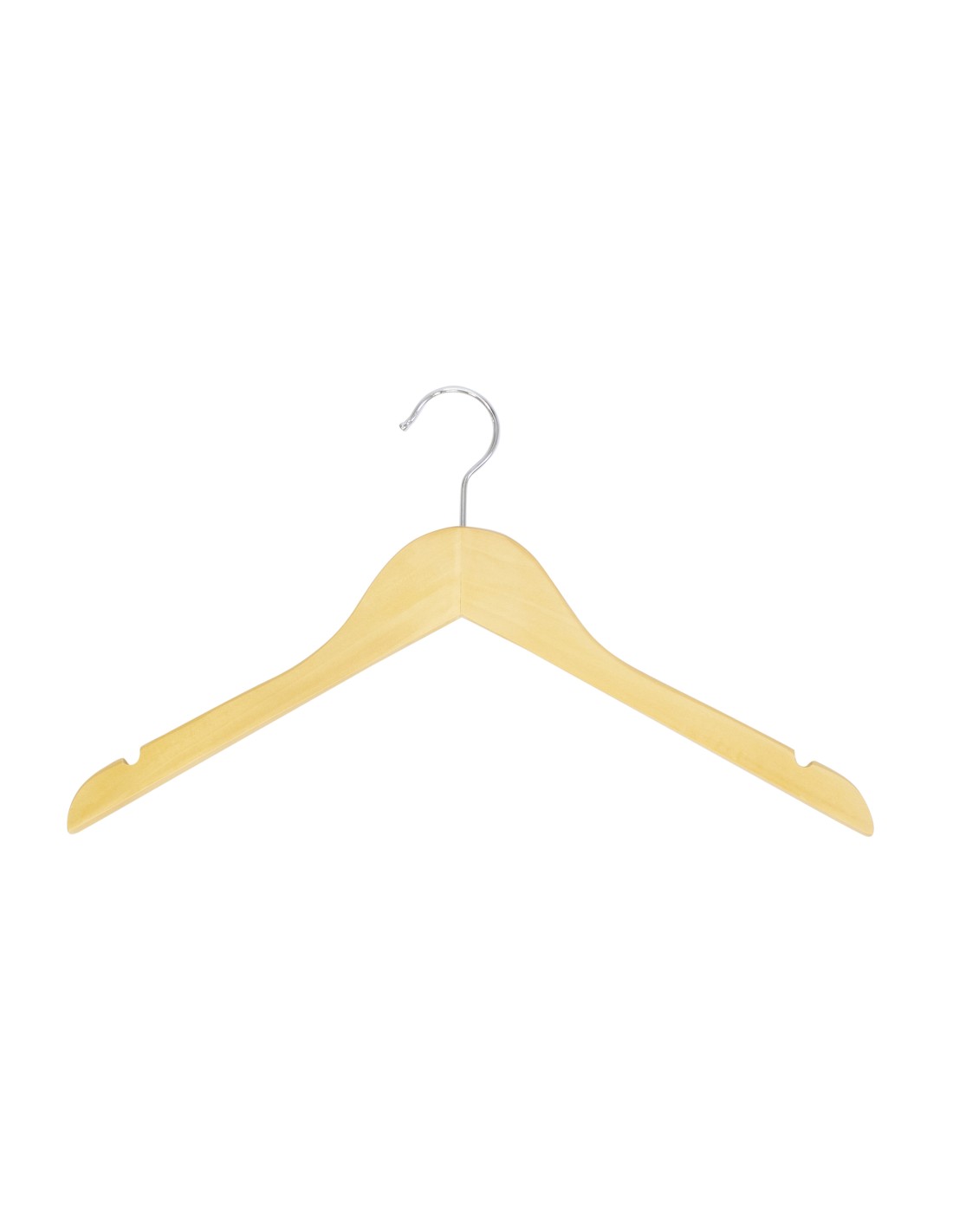 | Cintre légèrement galbé avec encoches, largeur 41 cm, bois de lotus, finition de protection vernis transparent mat, crochet brillant - carton de 100 pcs |