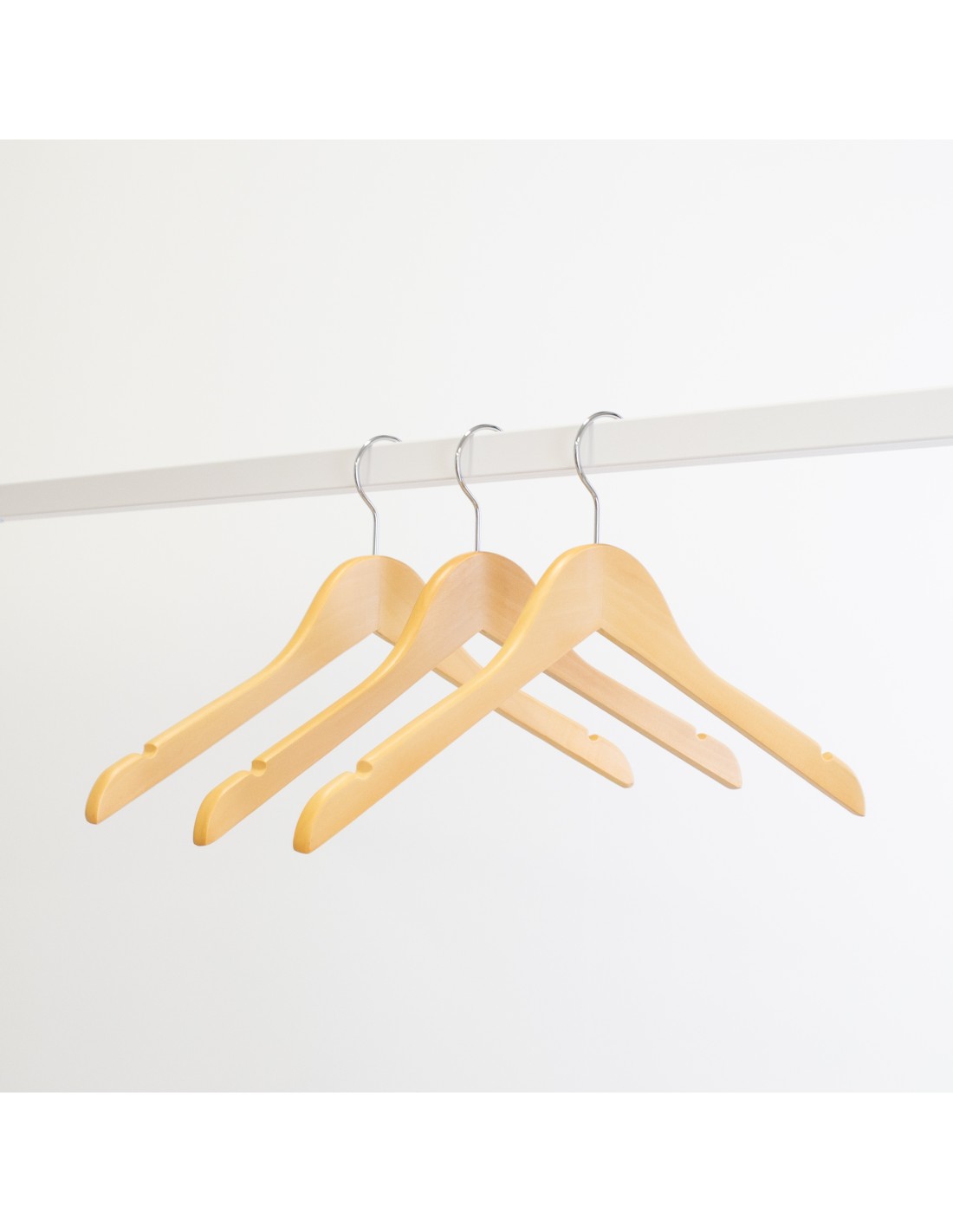 Cintre en bois avec encoches, 26 cm, bois de lotus, crochet brillant