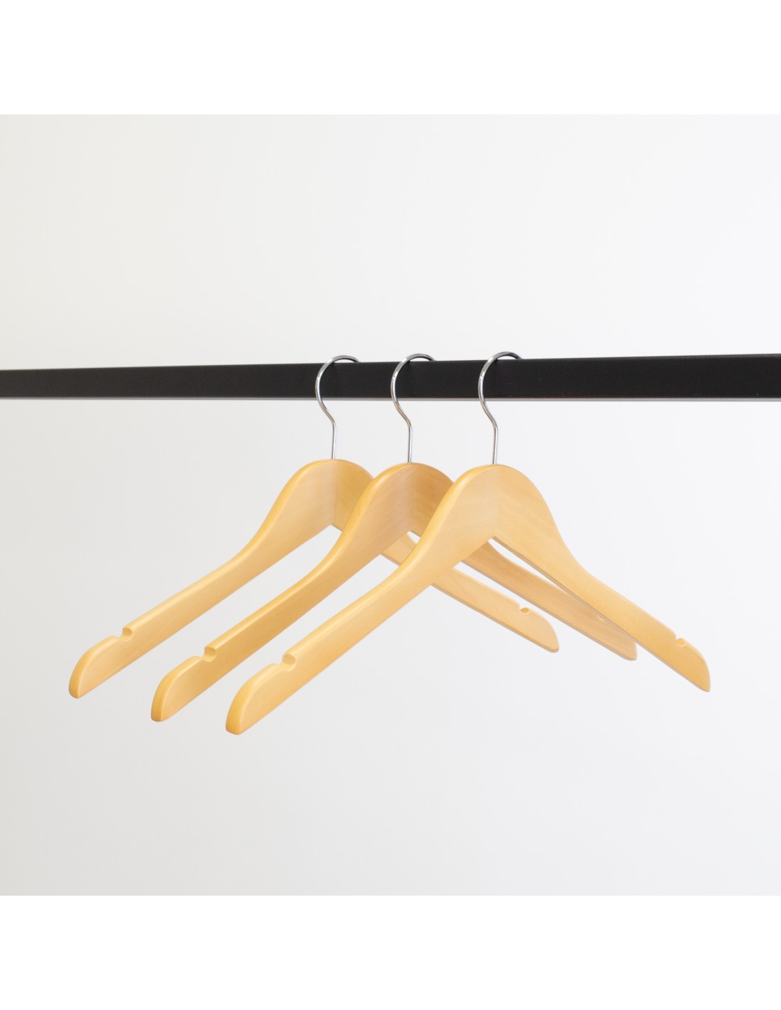 Cintre en bois avec encoches, 41 cm, bois de lotus, crochet brillant