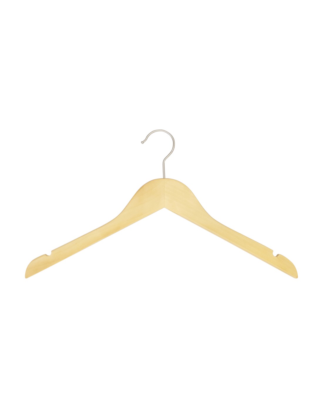 | Cintre légèrement galbé avec encoches, largeur 41 cm, bois de lotus, finition vernis transparent, crochet en nickel - carton de 100 pcs |