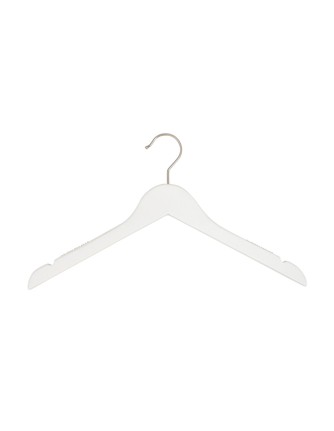 | Cintre légèrement galbé avec encoches, largeur 41 cm, bois de lotus, finition blanc mat, crochet en nickel - carton de 100 pcs |