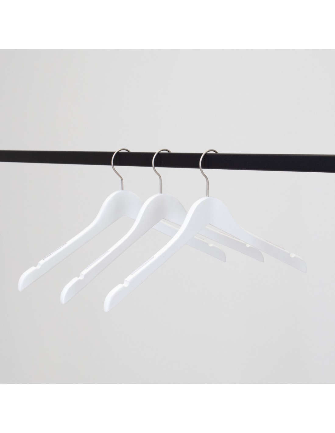 Cintre blanc avec encoches, 41 cm, bois de lotus, crochet mat