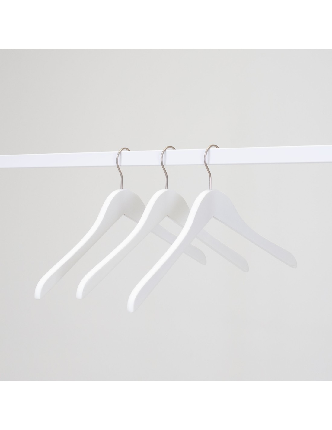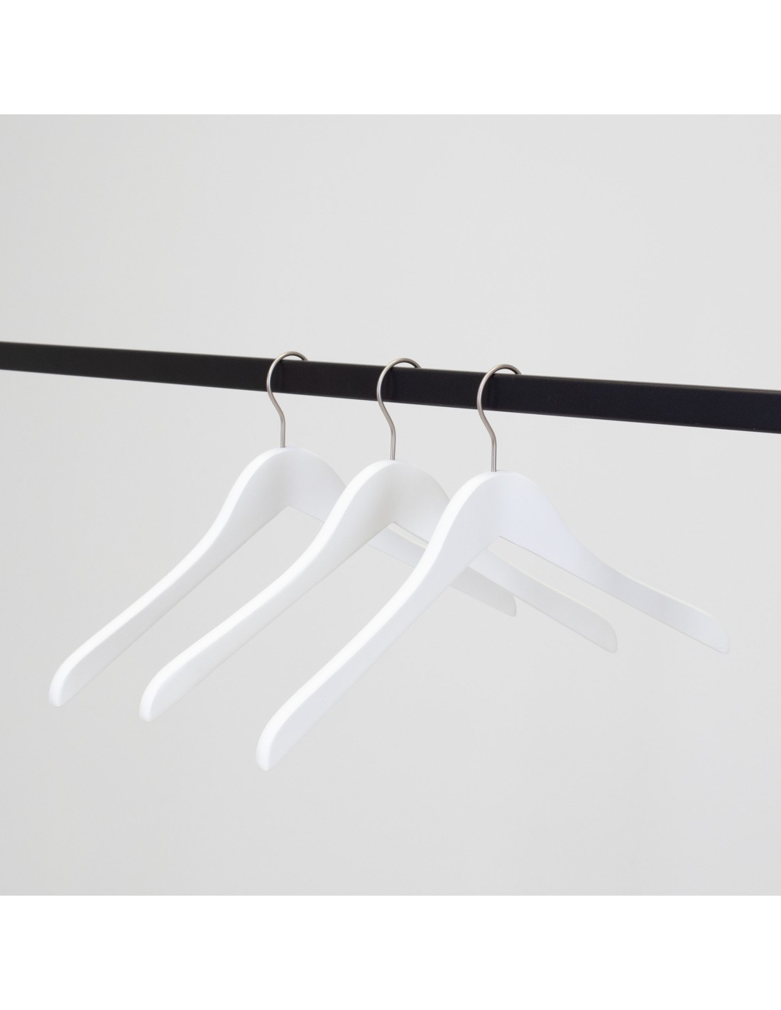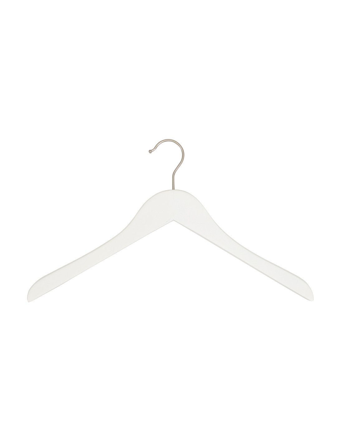 | Cintre légèrement galbé sans encoches, largeur 41 cm, bois de lotus, finition blanc mat, crochet en nickel - carton de 100 pcs |