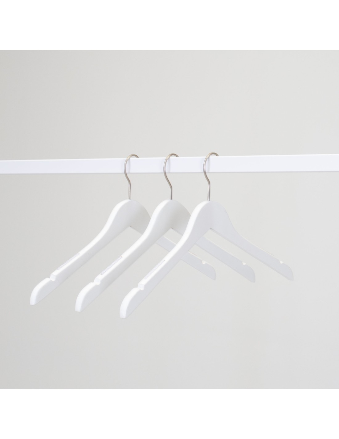 Cintre blanc avec encoches, 35 cm, bois de lotus, crochet mat