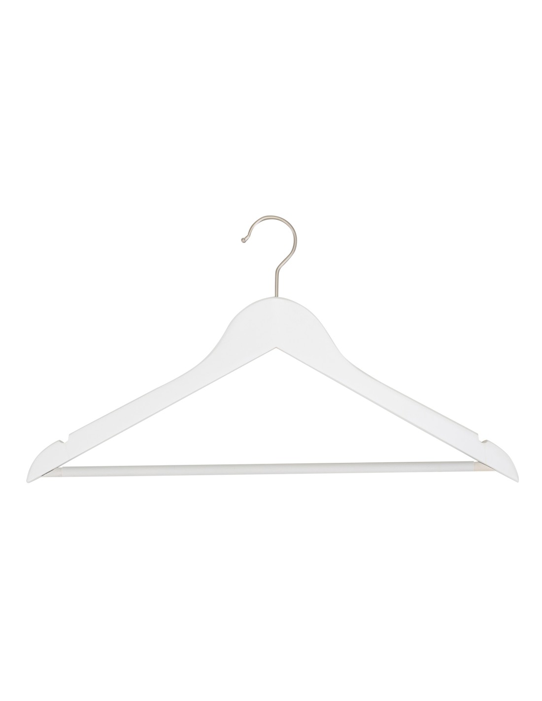 | Cintre légèrement galbé avec encoches et antiglisse aux épaules, largeur 44 cm, bois de lotus, finition blanc mat, crochet en nickel - carton de 100 pcs |