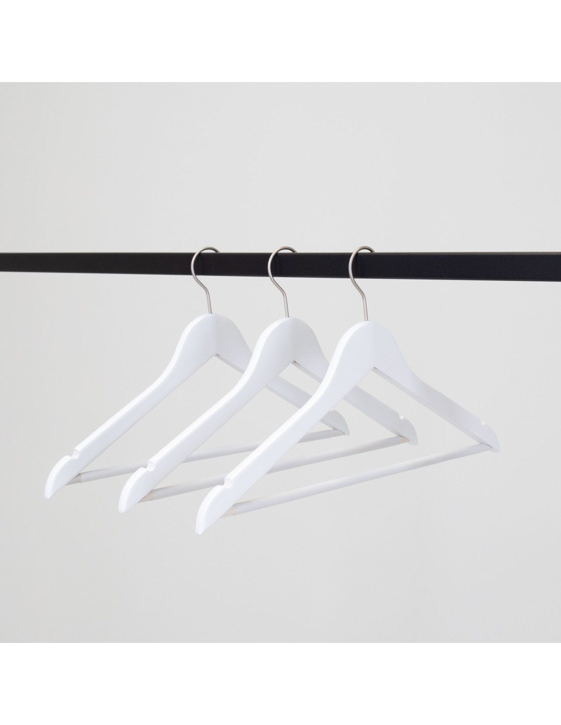 Cintre blanc avec encoches et antiglisse, 44 cm, bois de lotus, crochet mat