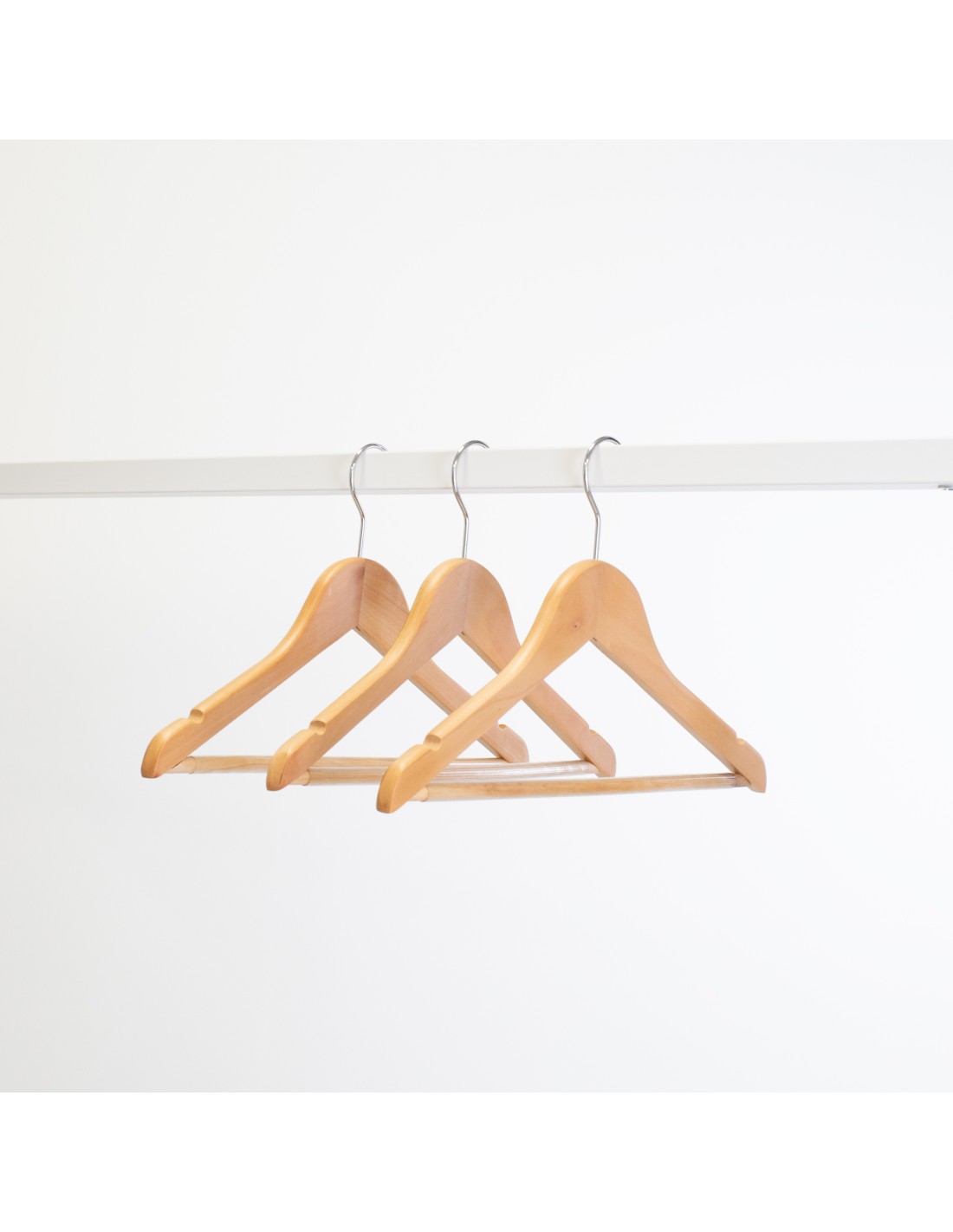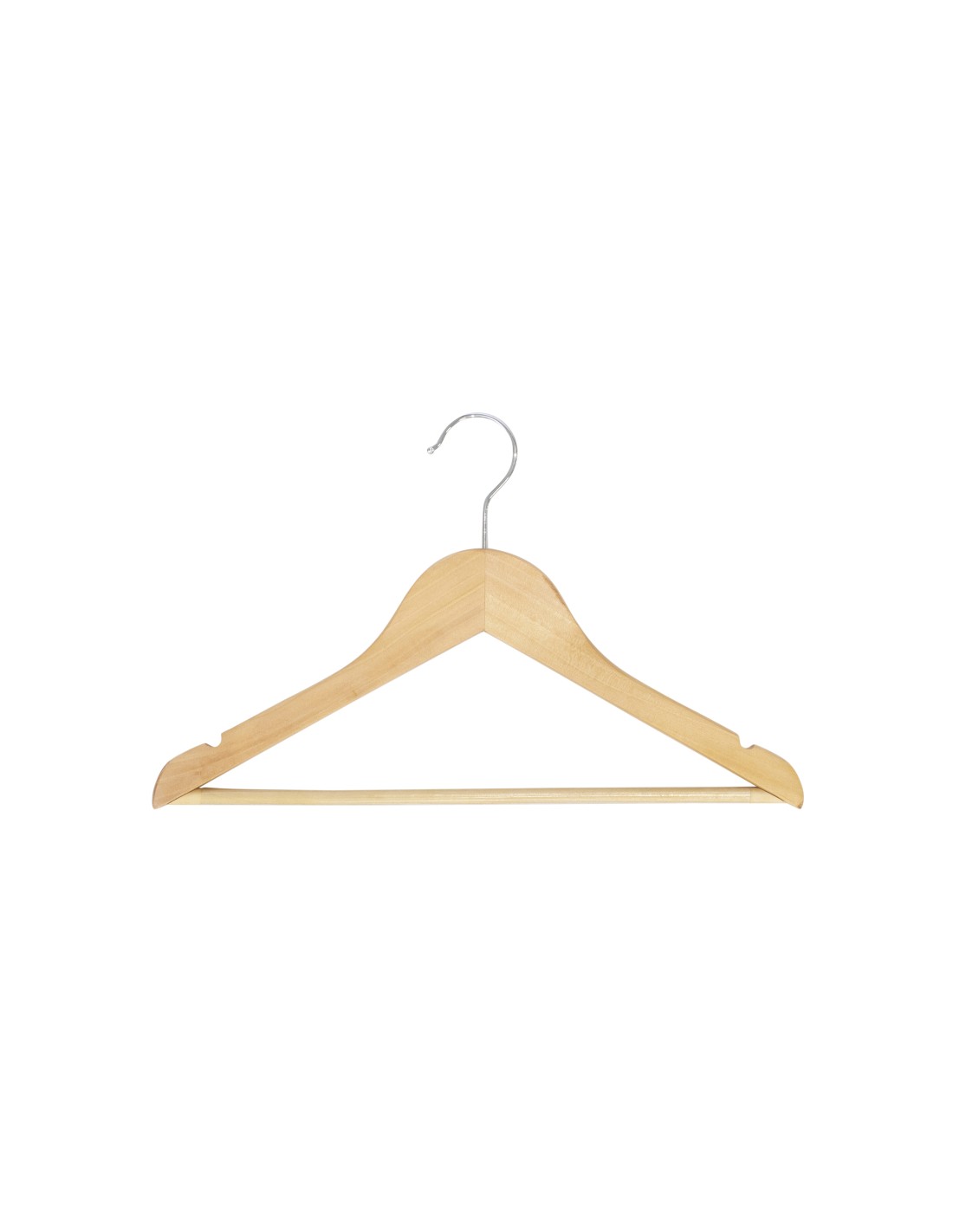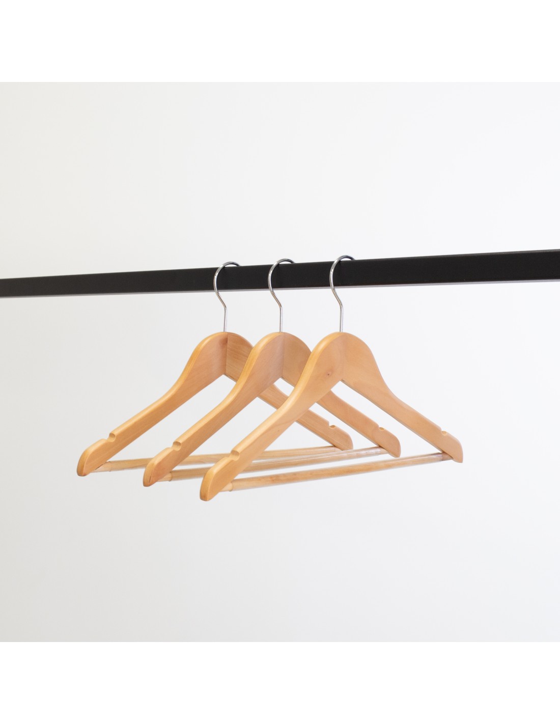 Cintre en bois avec encoches et barre antiglisse, 35 cm, crochet brillant