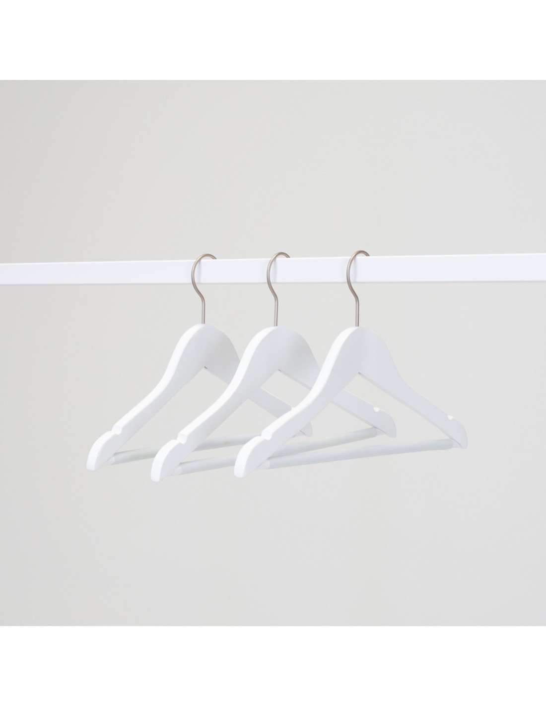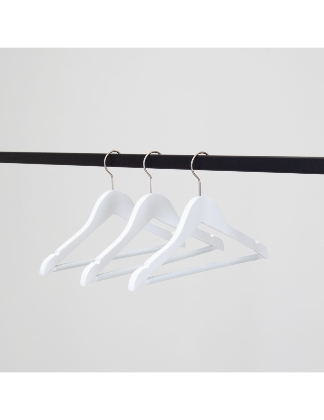 Cintre blanc avec encoches et barre antiglisse, 35 cm, bois de lotus, crochet mat